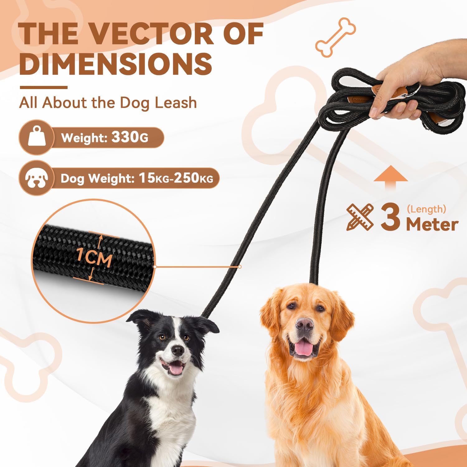 • Многофункционални функции: каишката е с диаметър 10 мм и дължина между 1,5 и 3 метра. Може да се използва като къса или дълга каишка, каишка за врата, каишка за бягане или каишка за тренировка, а закопчаването с тик-так може да се използва и за две кучета. Независимо дали е за разходка, тренировка или дейности на открито, тя е вашият верен спътник.