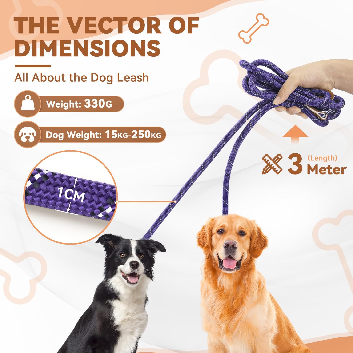 • Многофункционални функции: каишката е с диаметър 10 мм и дължина между 1,5 и 3 метра. Може да се използва като къса или дълга каишка, каишка за врата, каишка за бягане или каишка за тренировка, а закопчаването с тик-так може да се използва и за две кучета. Независимо дали е за разходка, тренировка или дейности на открито, тя е вашият верен спътник.