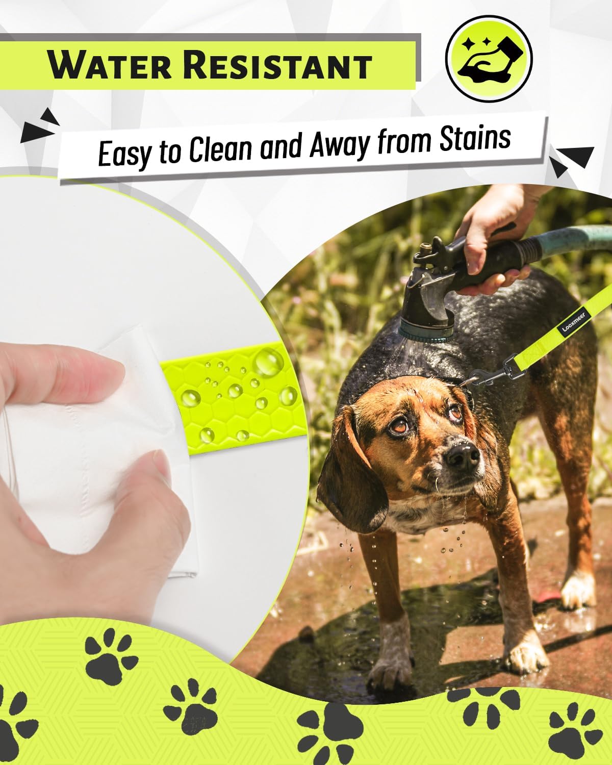 • Здрава каишка за кучета, лесна за почистване: Каишката за кучета е изработена от високоякостна найлонова тъкан и може да издържи на опън до 200 кг. Висококачественият материал на каишката за кучета е устойчив на разкъсване и не се поврежда лесно. Вода или мек препарат премахват замърсяванията незабавно – и след изсъхване тя отново е свежа и издръжлива.