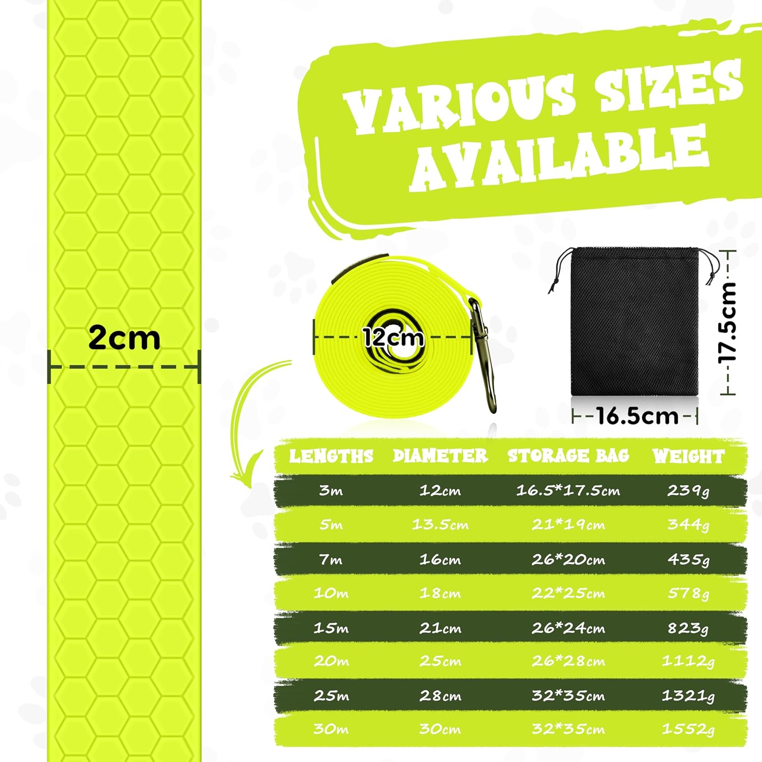 Повод за кучета Recall, Здрав повод за обучение с чанта за съхранение, каишка за ръка и D-пръстен тип „омар“, 3 м / 5 м / 10 м / 15 м / 20 м / 25 м / 30 м, Черен и неоново жълт