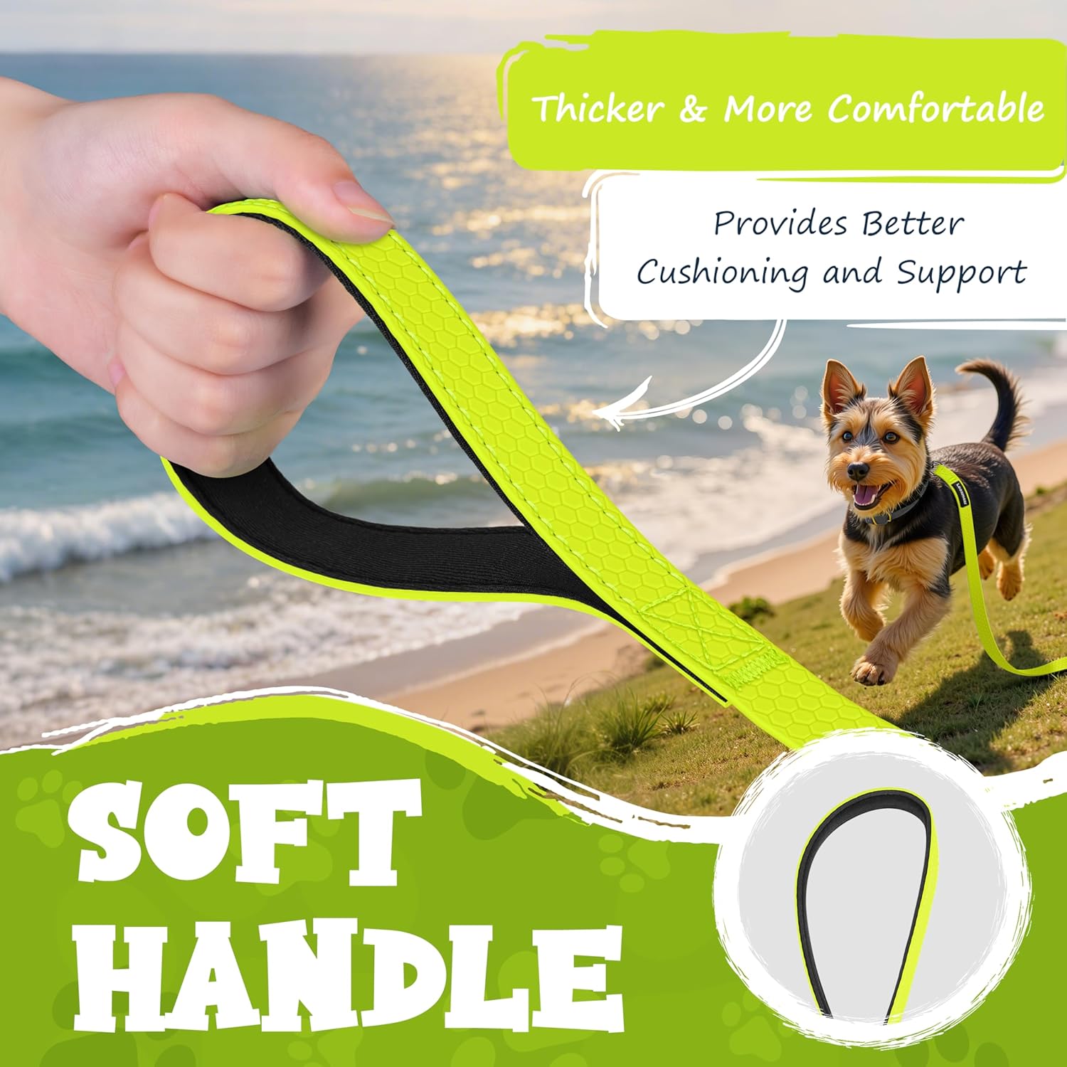 • Ергономична дръжка и въртящ се на 360° карабинер: Дръжката на повода за кучета е снабдена с мека памучна подплата, която може да намали натиска върху ръцете ви, позволявайки на вас и вашето куче да играете на открито дълго време. Въртящият се на 360° карабинер е лек, здрав и може бързо да се прикрепи към нашийника, без да се отваря. Така кучето ви е в безопасност и все още може да души наоколо.