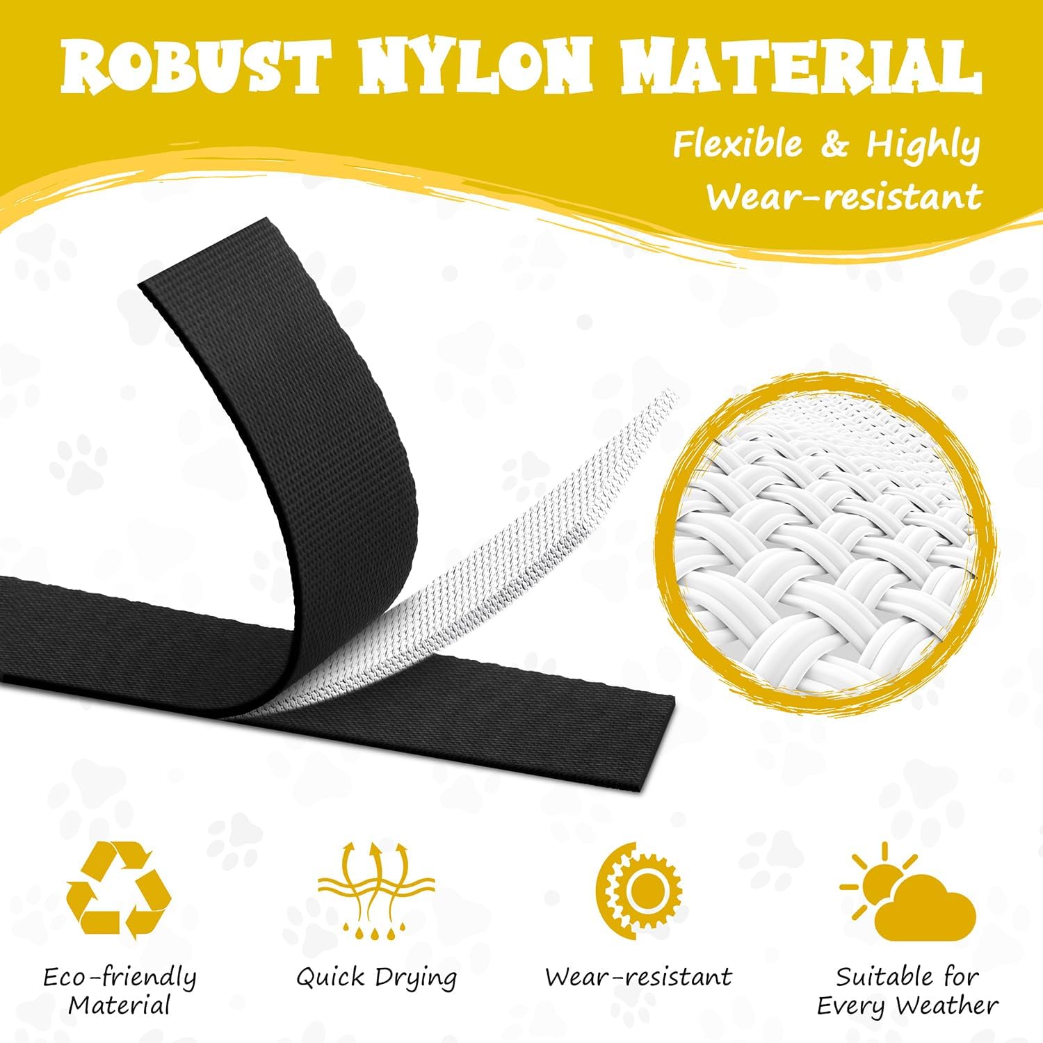 • Здрава каишка за кучета, лесна за почистване: Каишката за кучета е изработена от високоякостна найлонова тъкан и може да издържи на опън до 200 кг. Висококачественият материал на каишката за кучета е устойчив на разкъсване и не се поврежда лесно. Вода или мек препарат премахват замърсяванията незабавно – и след изсъхване тя отново е свежа и издръжлива.