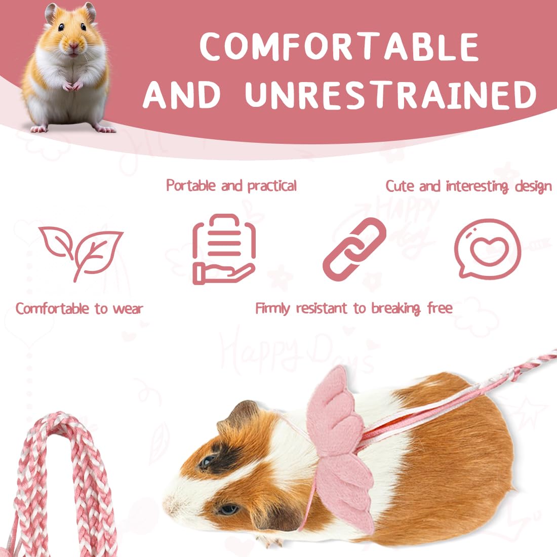 • СЛАДЪК ДИЗАЙН Розовата каишка с форма на крилца е сладка и привличаща вниманието, добавяйки усещане за игривост към хамстера. Когато се разхожда, хамстерът привлича много внимание и отговаря на нуждите на сладките стопани на домашни любимци.