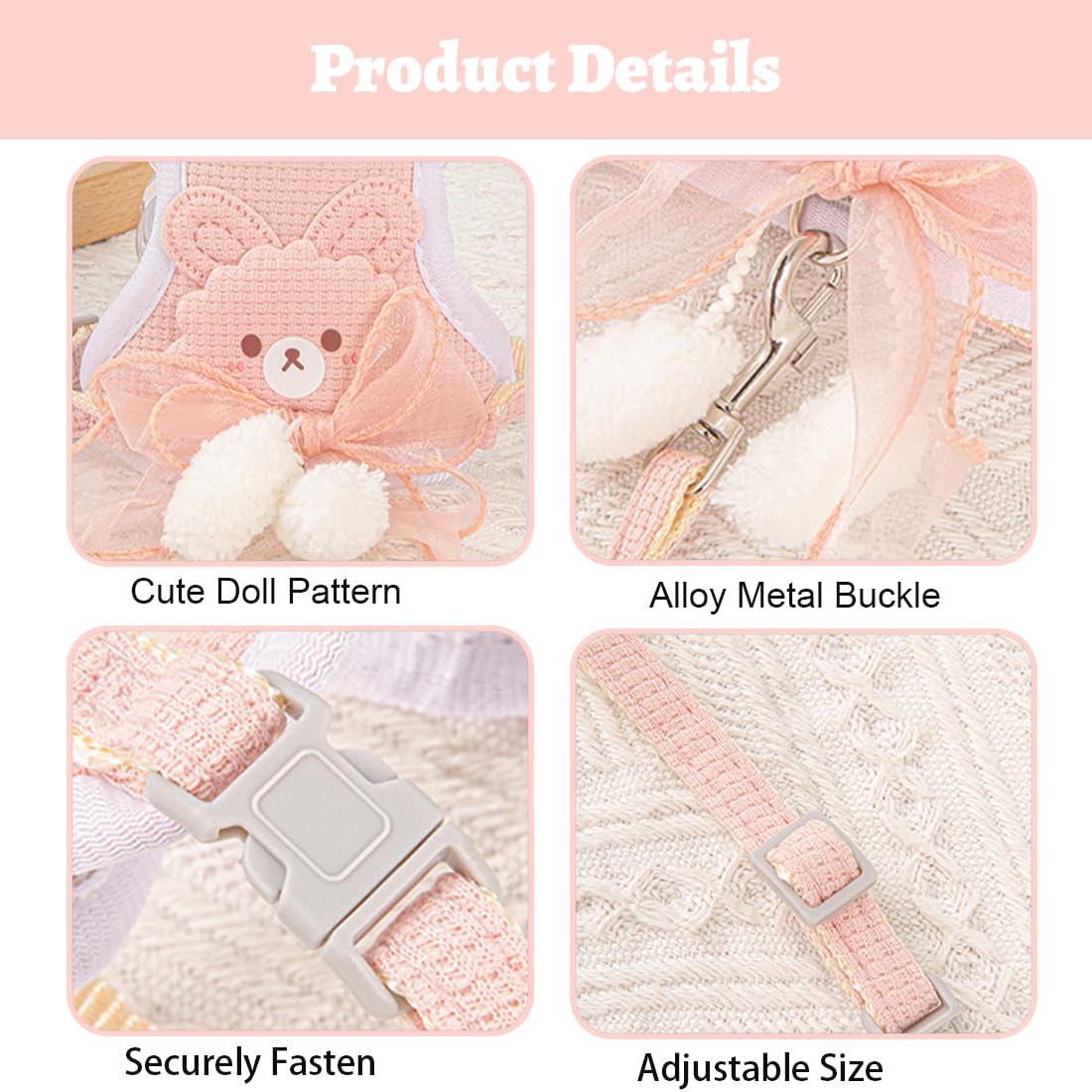 • Широка гама от сценарии: не само за зайци, но и за котки, морски свинчета, катерици и други малки домашни любимци, независимо дали става въпрос за разходки на открито, ежедневие у дома или кратки пътувания, може да осигури безопасно задържане и сладка превръзка за домашните любимци.