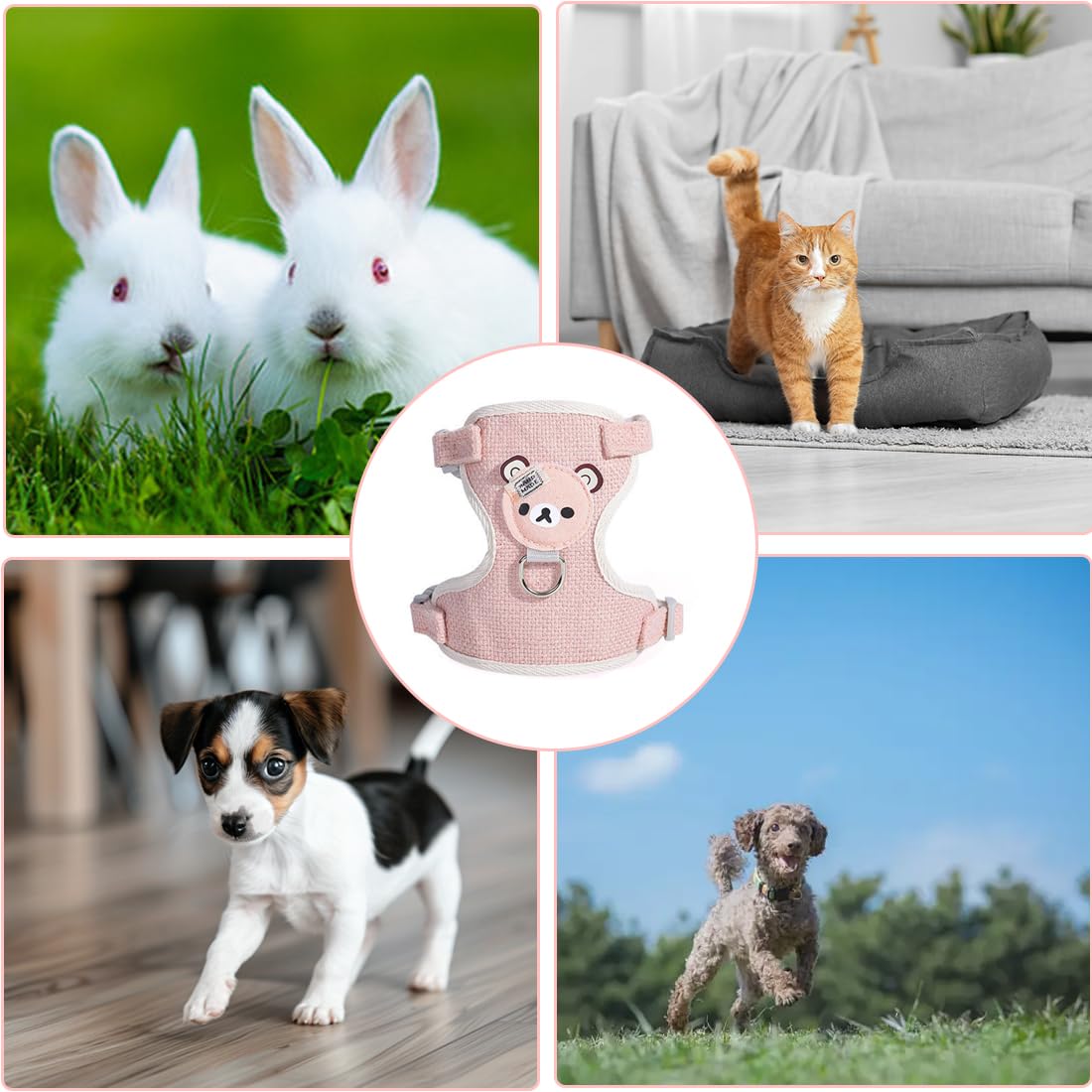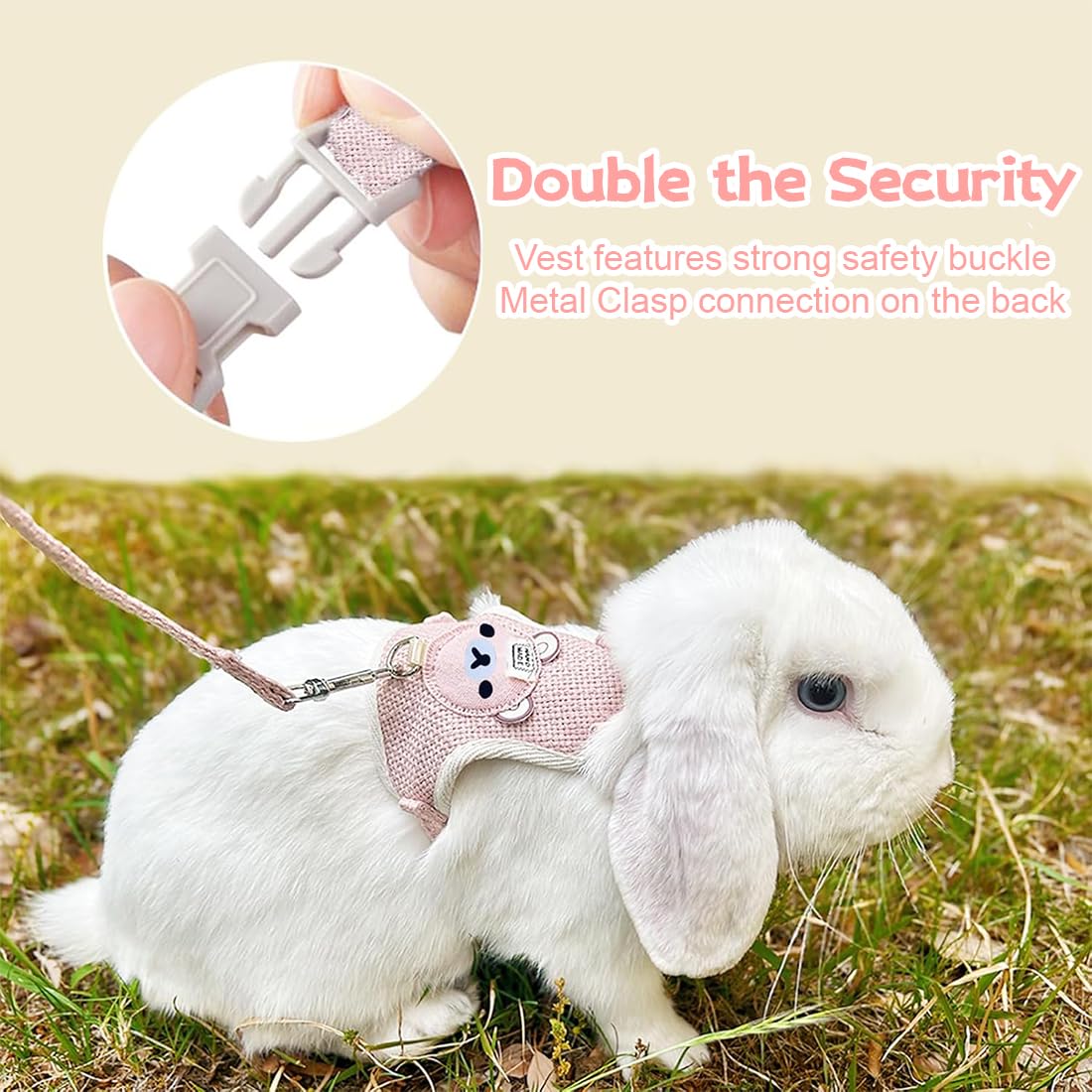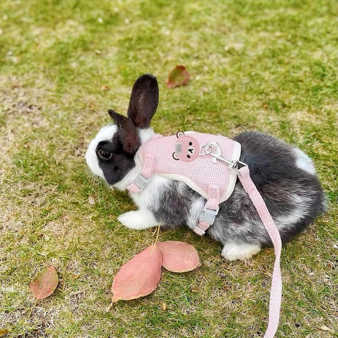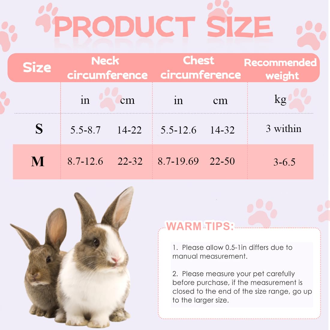 Повод за зайци, Регулируем повод за зайци, 120 см мек повод за зайци, Аксесоари за зайци, Нагръдник за зайци, котки и други малки домашни любимци (Розов, M)
