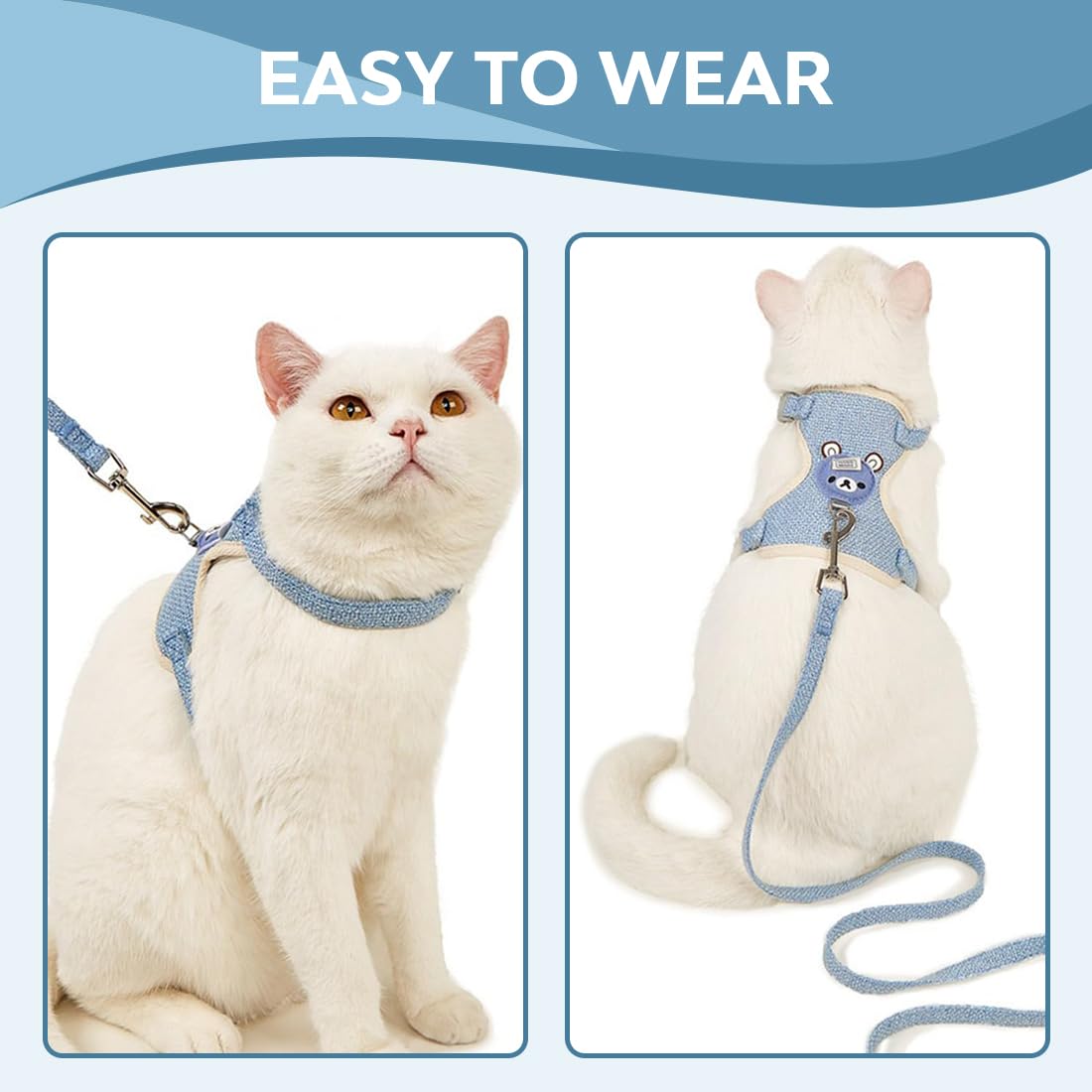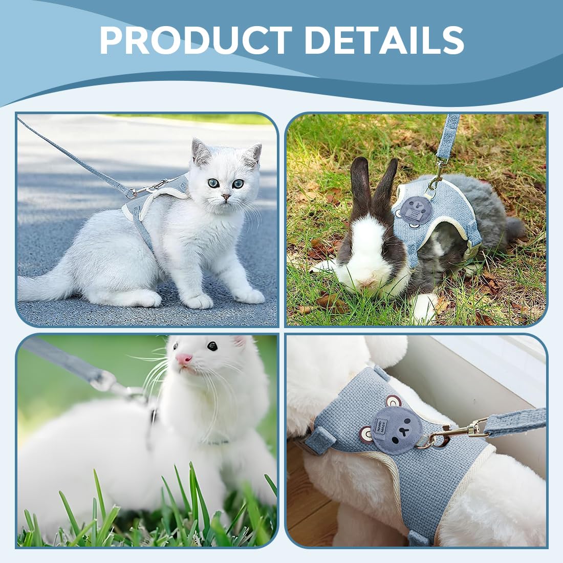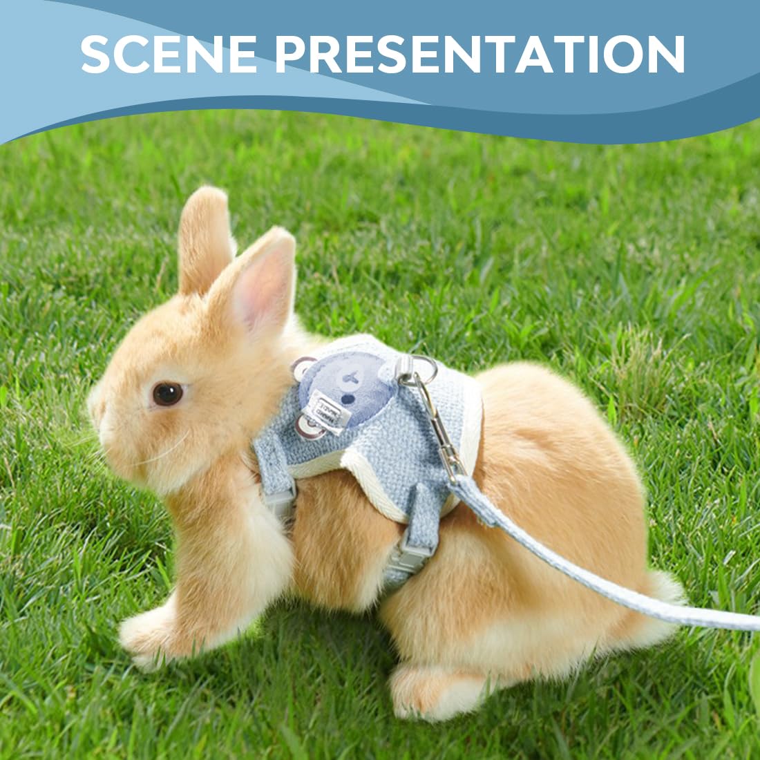 Повод за зайци, Регулируем повод за зайци, Мек повод за зайци 120 см, Аксесоари за зайци, Нагръдник за зайци, котки, малки кучета и други малки домашни любимци (Син S)