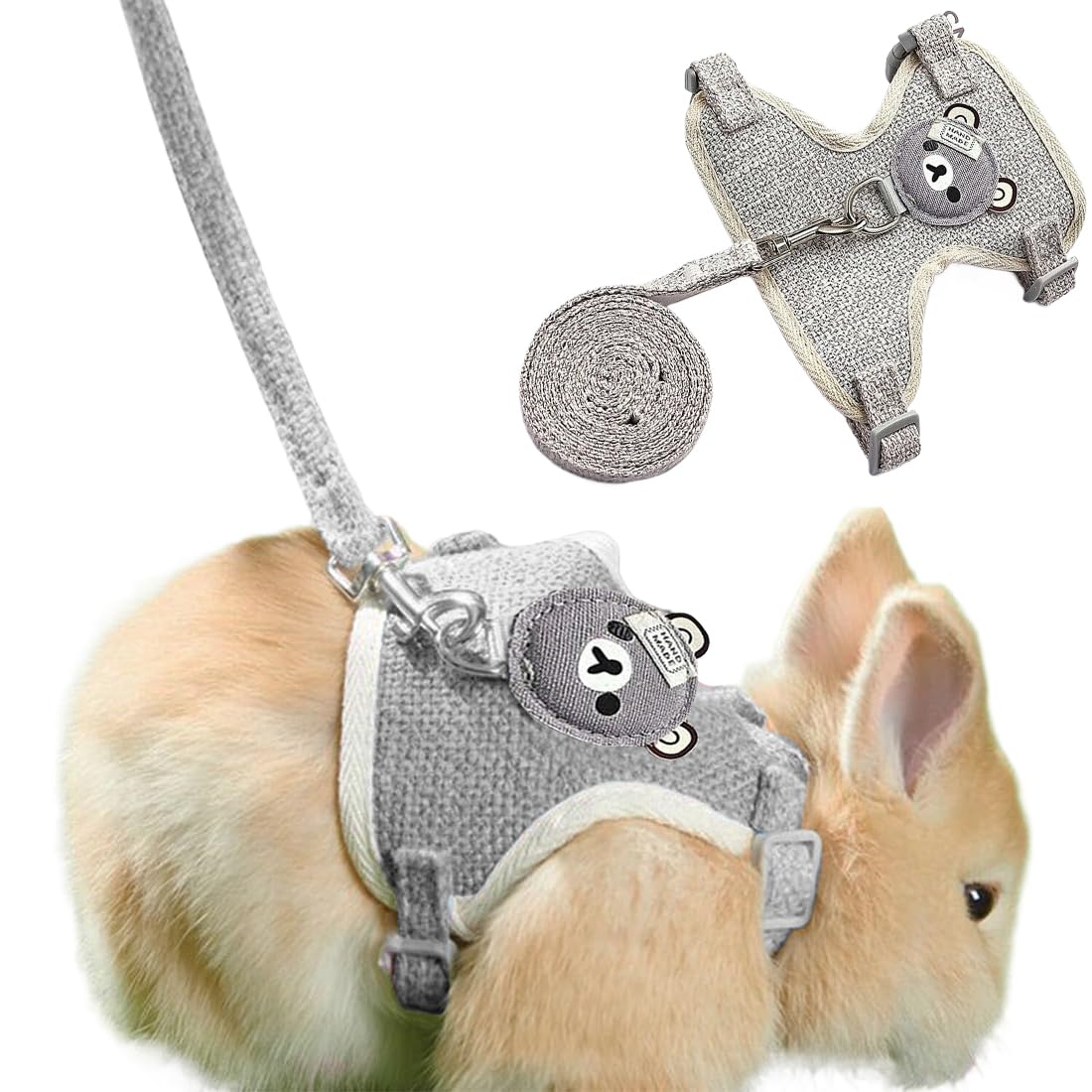 NICOLA Повод за зайци, Регулируем повод за кучета, 120 см мек повод за зайци, Аксесоари за зайци, Нагръдник за зайци, котки, малки кучета и други малки домашни любимци (Сив L)
