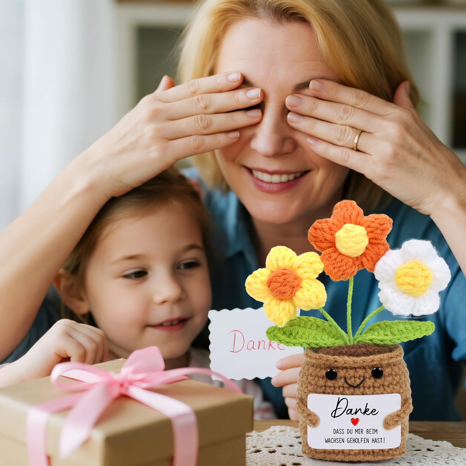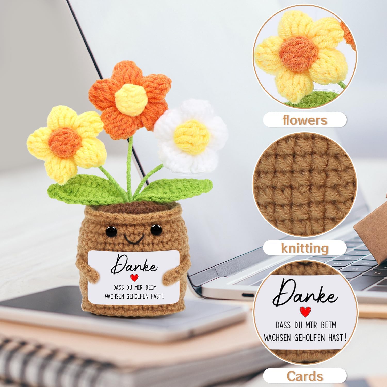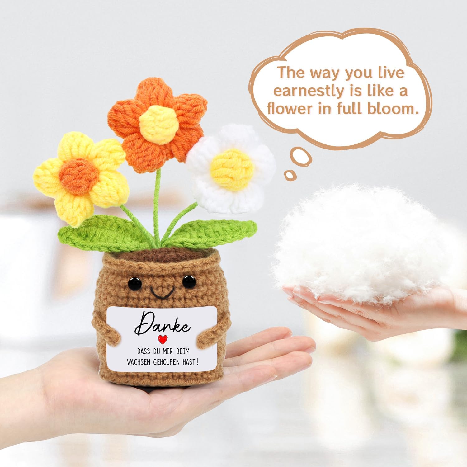 • Добре изработено: Ръчно плетеното цвете е изработено в традиционен занаятчийски стил и впечатлява с изящни детайли. Цветята са сладки и фигуративни, а текстовата картичка е прекрасна и топла и гарантирано ще ви накара да се усмихнете.