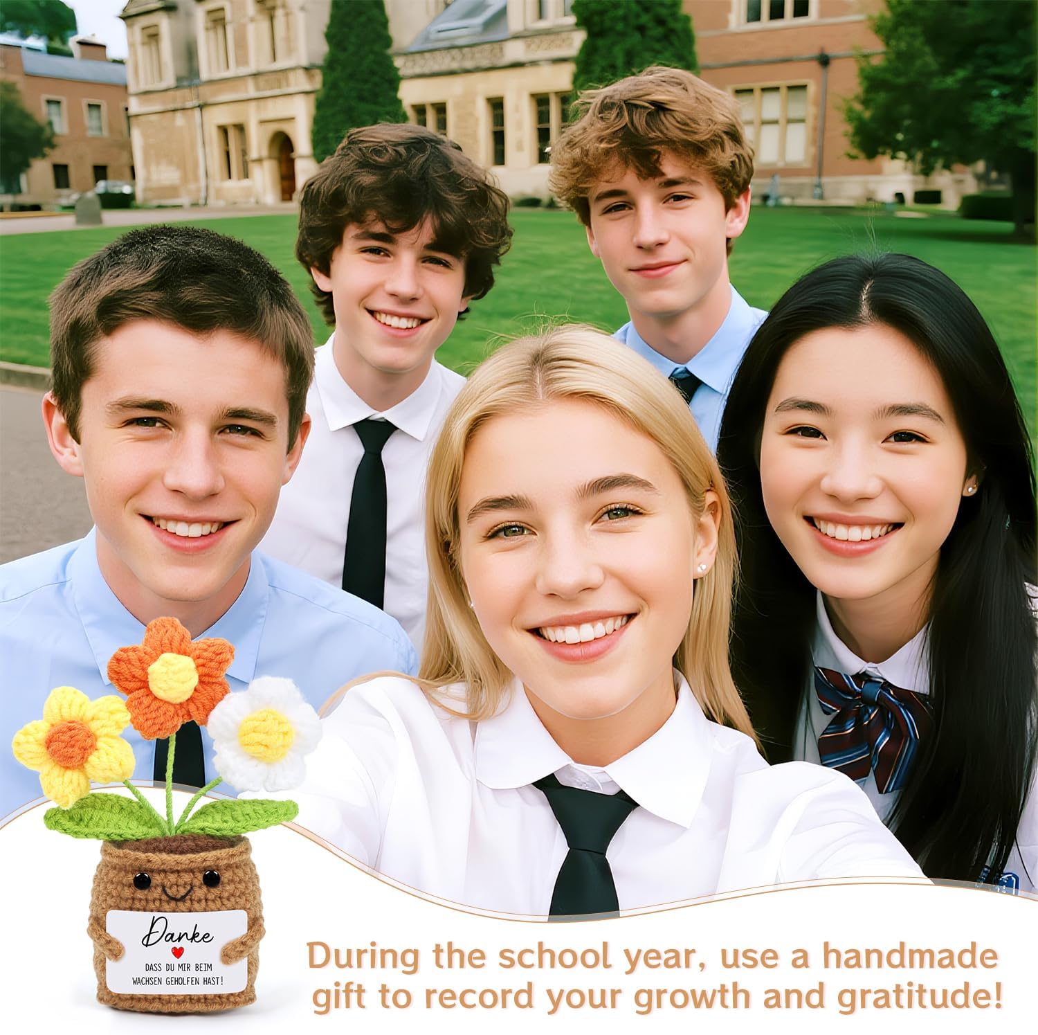 • Съдържание на кутията: ще получите сладка, усмихната, плетена кукла с цвете и картичка с текст „Благодаря, че ми помогнахте да порасна!“, за да изразите своята благодарност.