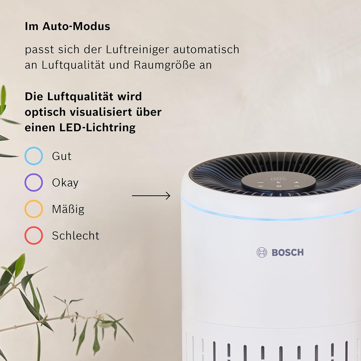 • Елегантен дизайн на Bosch: със своя елегантен, вечен дизайн, пречиствателят на въздух хармонично се интегрира в различните помещения на вашия дом, осигурявайки лесна и комфортна работа.