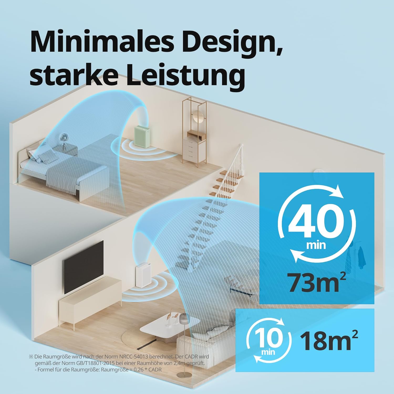 • Свеж въздух през цялата година с удължен живот на филтъра: Наслаждавайте се на чист въздух през цялата година и спестете от разходи за филтри, защото нашите филтри издържат до 12 месеца, в сравнение с други пречистватели на въздух, които трябва да се сменят на всеки 6 до 9 месеца