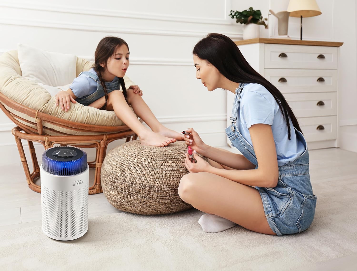 Пречиствател на въздух COWAY за страдащи от алергии, супер тих режим на сън, светлина за настроение, премахва 99.999% от вредните частици до 0.01 µm, за алергии (ECARF печат), прах и полени, CADR 244 m³/h - Airmega 100