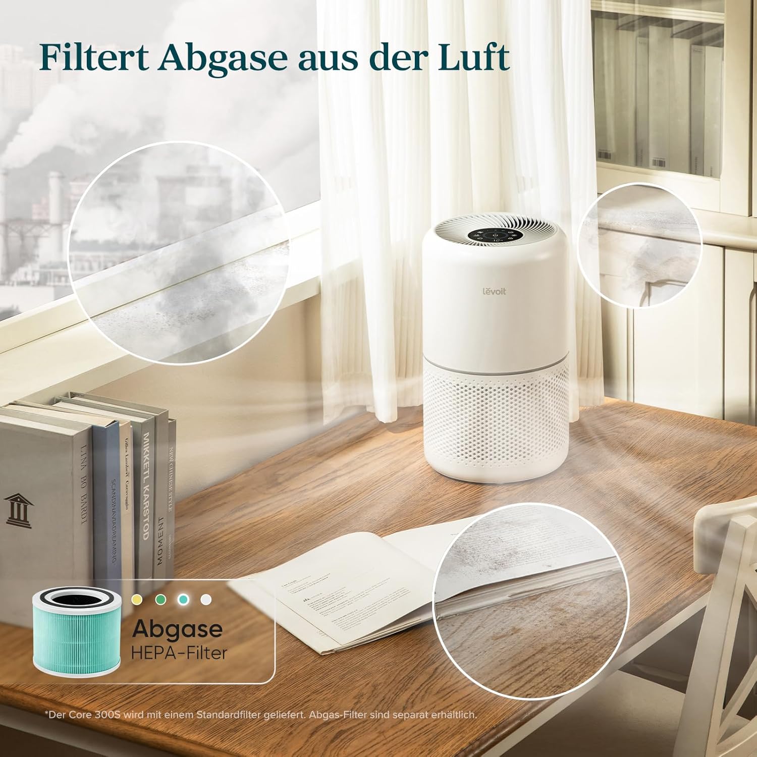 Пречиствател на въздух Levoit Core 300 и Core 300S с филтър за токсини срещу 99,97% от замърсяването на въздуха, димни и отработени газове, HEPA филтър, високоефективен филтър с активен въглен и предфилтър, за пушачи