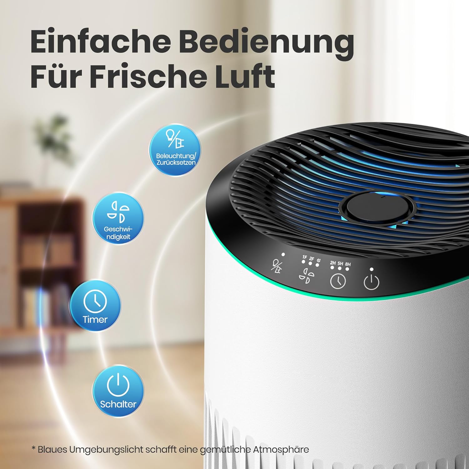 • Цялостно 360-градусов чист въздух: Нашите пречистватели на въздух за спални са проектирани с 360-градусова система за всмукване на въздух за цялостно и равномерно пречистване на въздуха, независимо къде ги поставяте. Достатъчно универсален е за спални, общежития, апартаменти, офиси, кухни и мазета. С елегантния и преносим дизайн на пречиствателя на въздух можете без усилие да го транспортирате от стая в стая, осигурявайки ви глътка свеж въздух, където и да ви е необходим.
