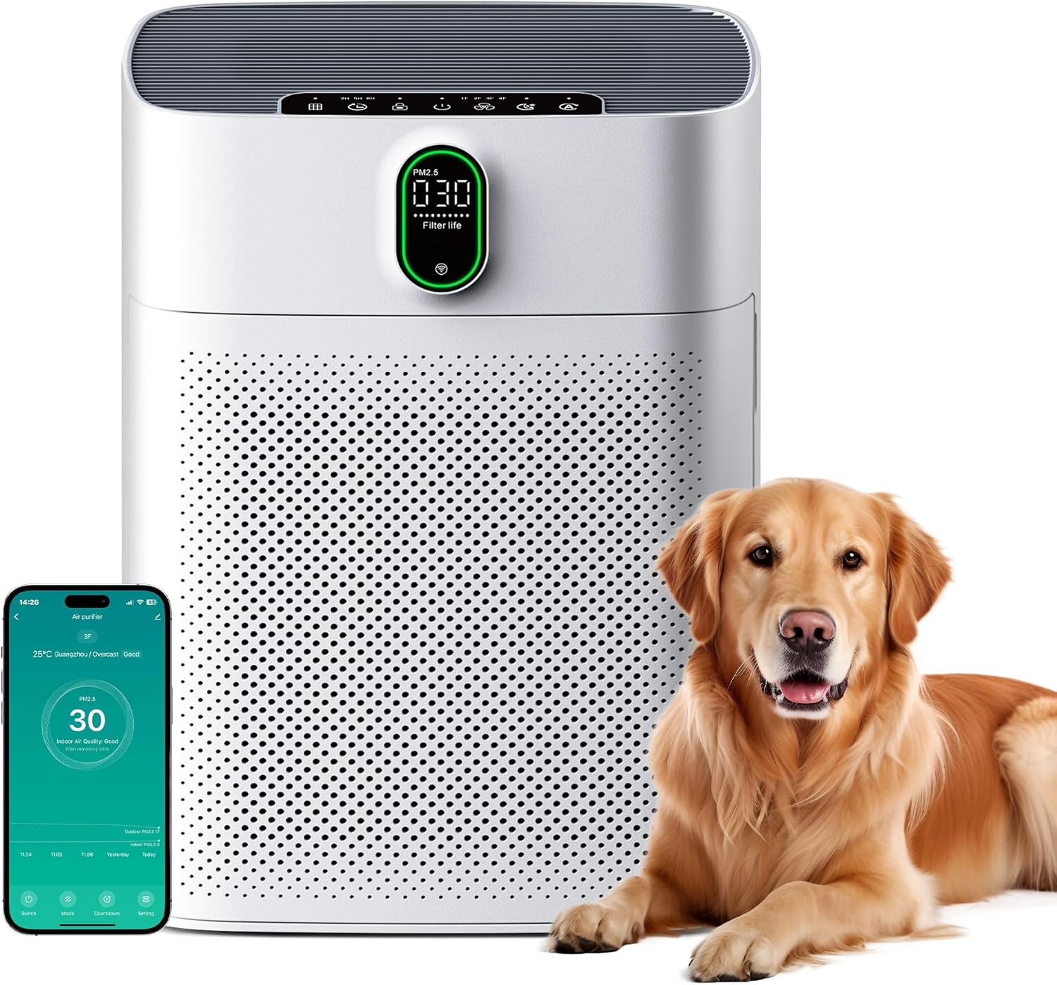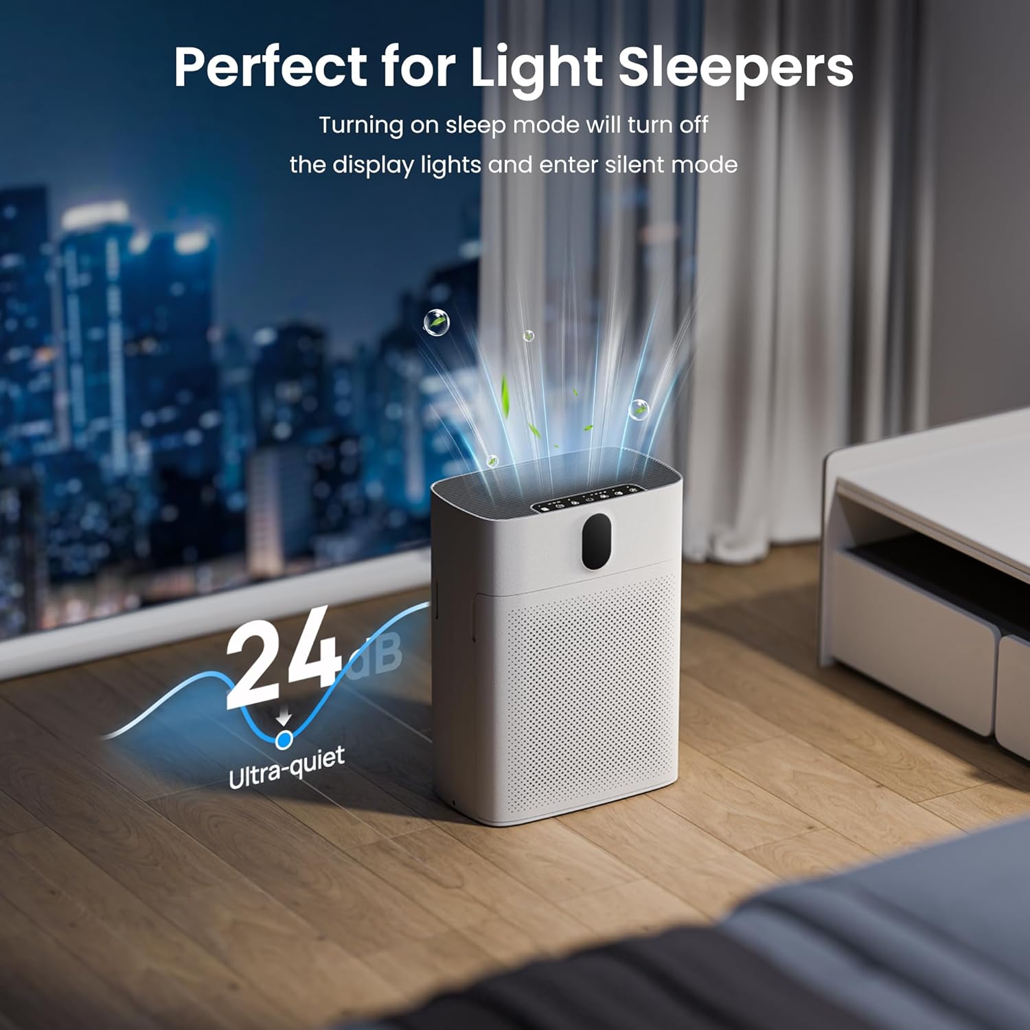 Пречиствател на въздух за дома и пушачите, подходящ за алергени, HEPA филтър срещу прах и полени, CADR 300 м³/ч за 100 м², тих 24 dB, таймер, обратна връзка за качеството на въздуха и автоматичен режим, 1 комплект + 3 режима