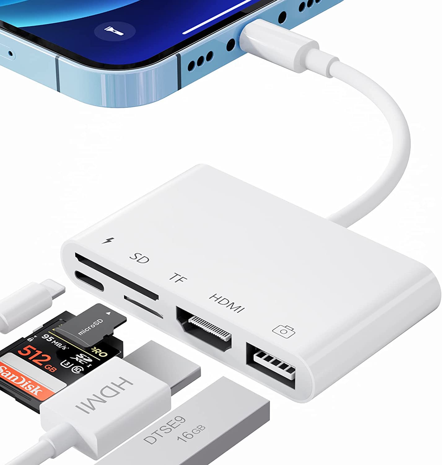 • iPhone HDMI адаптер е супер практичен за офиса – бързо и стабилно дублиране на данни, снимки и видео от карти с памет към проектора чрез адаптер, със свързване на мишка или клавиатура – 1 x USB камера адаптер за свързване на устройства като / флаш устройство / камера / MIDI клавиатура, мишка и др. 1 x HDMI OTG адаптер с ярък 1080P HDMI изход за цифров AV адаптер. Адаптер за четец на карти SD/SD/TF. с отлична гъвкавост при съхранение на данни.