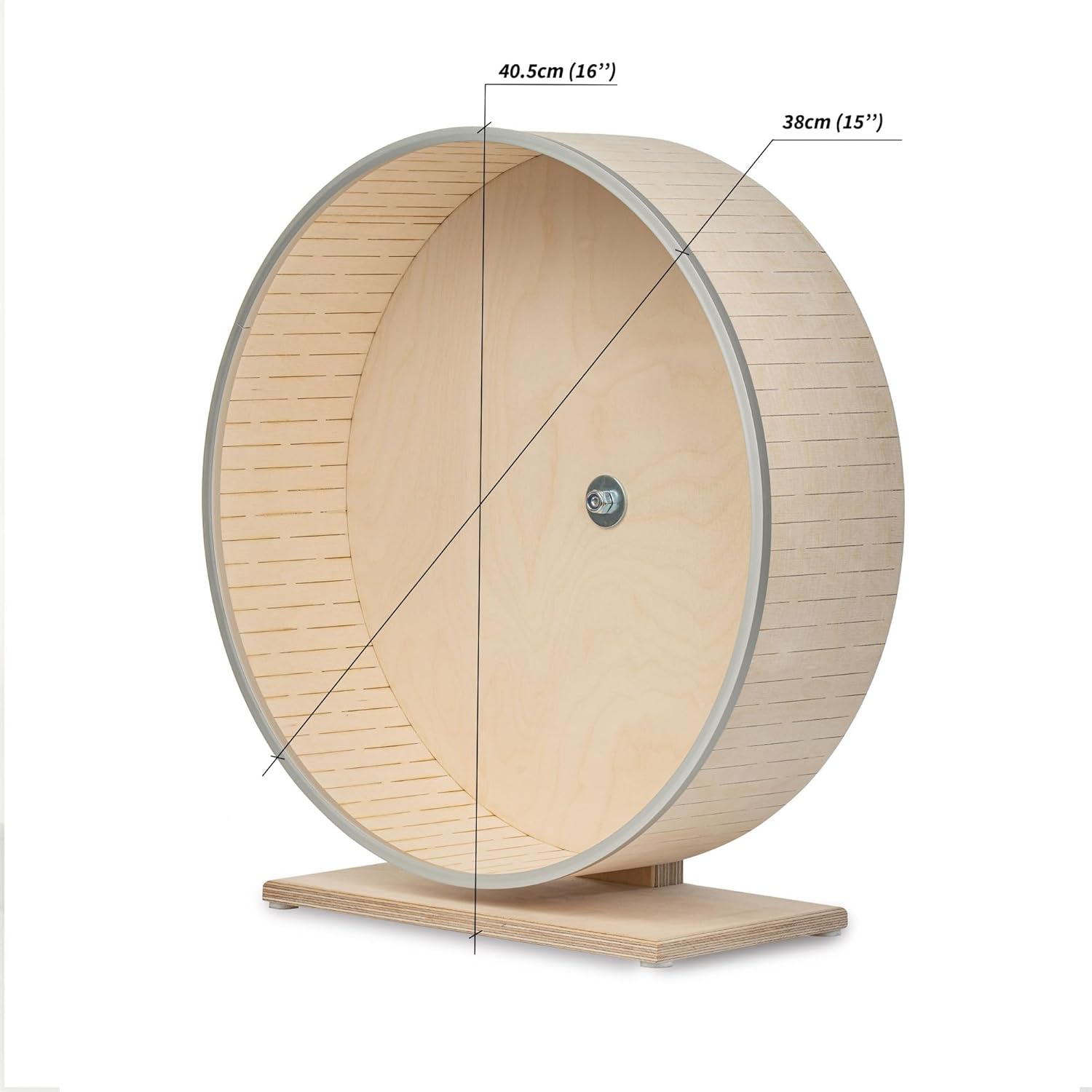 Предложете на вашата чинчила безопасно и тихо бягане с този тих първокласен балансиращ велоергометър с диаметър 33 см, поставен на здрава стойка. Благодарение на прецизно проектираните сачмени лагери, колелото се движи изключително тихо. С плоската си, гладка повърхност от двете страни, то осигурява безопасна среда за бягане и предотвратява наранявания или прищипване на лапите по време на игра. Безопасността и удоволствието на вашия домашен любимец са на първо място. Металната джанта против дъвчене осигурява допълнителна сигурност. Произведено в Латвия.