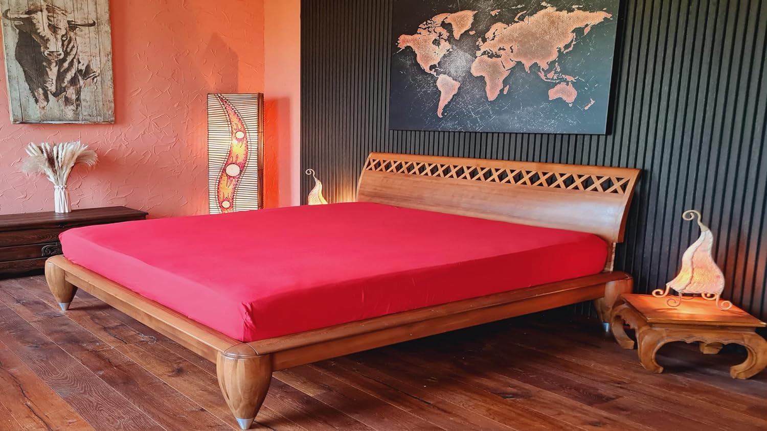• Размер: памучен чаршаф с еластична материя с размери 180 x 200 до 200 x 220 см с екстра висок мост (40 см) - подходящ за водни легла, легла с пружинна основа и всички матраци с височина до 35 см с размери 180 x 200, 180 x 210, 180 x 220, 200 x 200 000, 200 x 210 и 200x220
