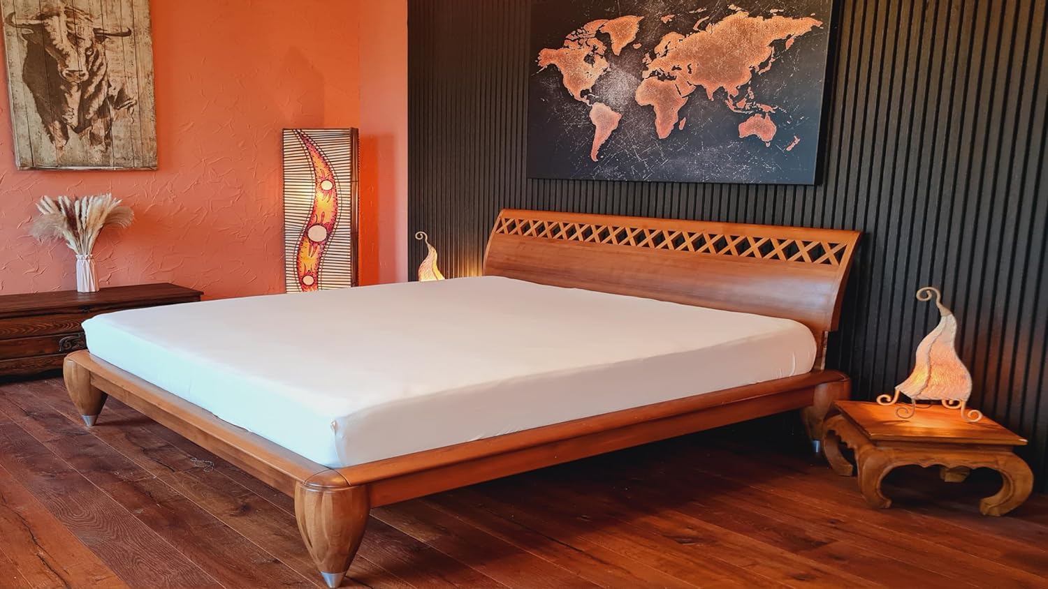 • Размер: памучен чаршаф с еластична материя с размери 180 x 200 до 200 x 220 см с екстра висок мост (40 см) - подходящ за водни легла, легла с пружинна основа и всички матраци с височина до 35 см с размери 180 x 200, 180 x 210, 180 x 220, 200 x 200 000, 200 x 210 и 200x220