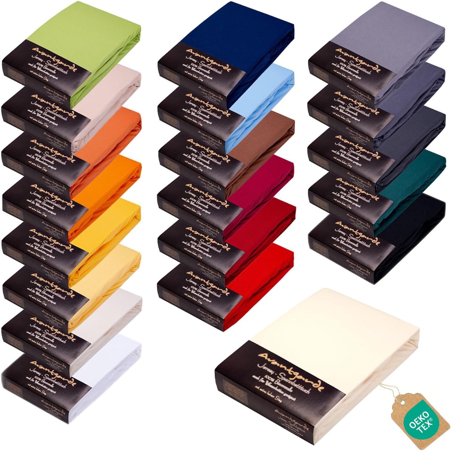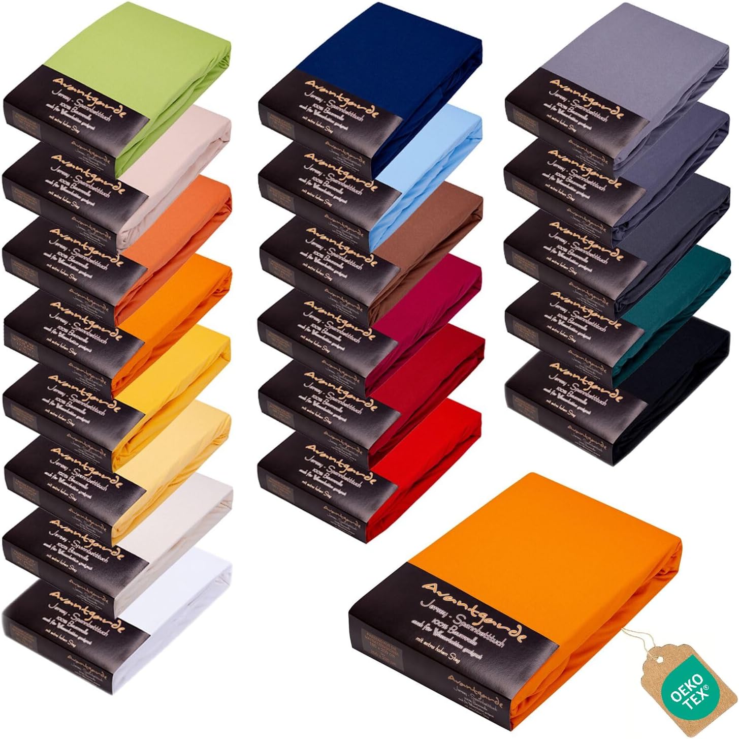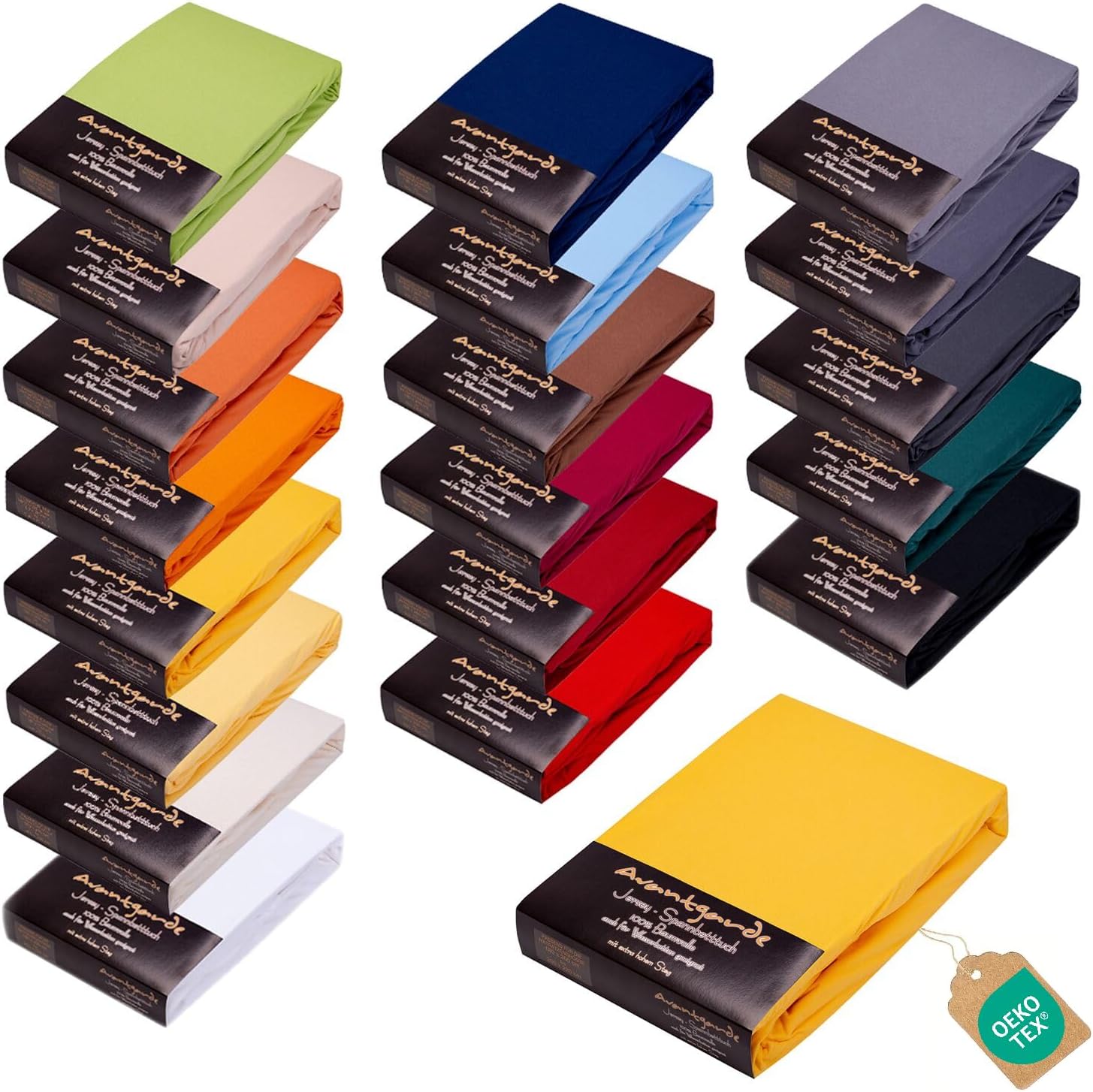 Премиум чаршаф с еластична материя AVANTGARDE – 140 x 200 – 160 x 220 – 40 см основа – Подходящ и за матраци с пружинна основа и водни легла – Чаршаф с еластична материя, много добър, приблизително 170 г/м² – плосък чаршаф, 100% джърси памук, Oeko-Tex (16