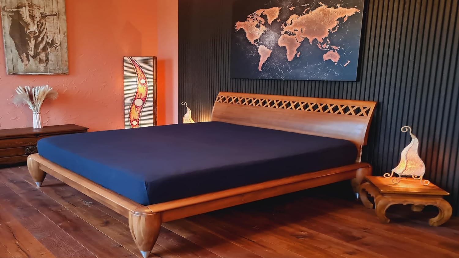 • Размер: памучен чаршаф с еластична материя с размери 180 x 200 до 200 x 220 см с екстра висок мост (40 см) - подходящ за водни легла, легла с пружинна основа и всички матраци с височина до 35 см с размери 180 x 200, 180 x 210, 180 x 220, 200 x 200 000, 200 x 210 и 200x220