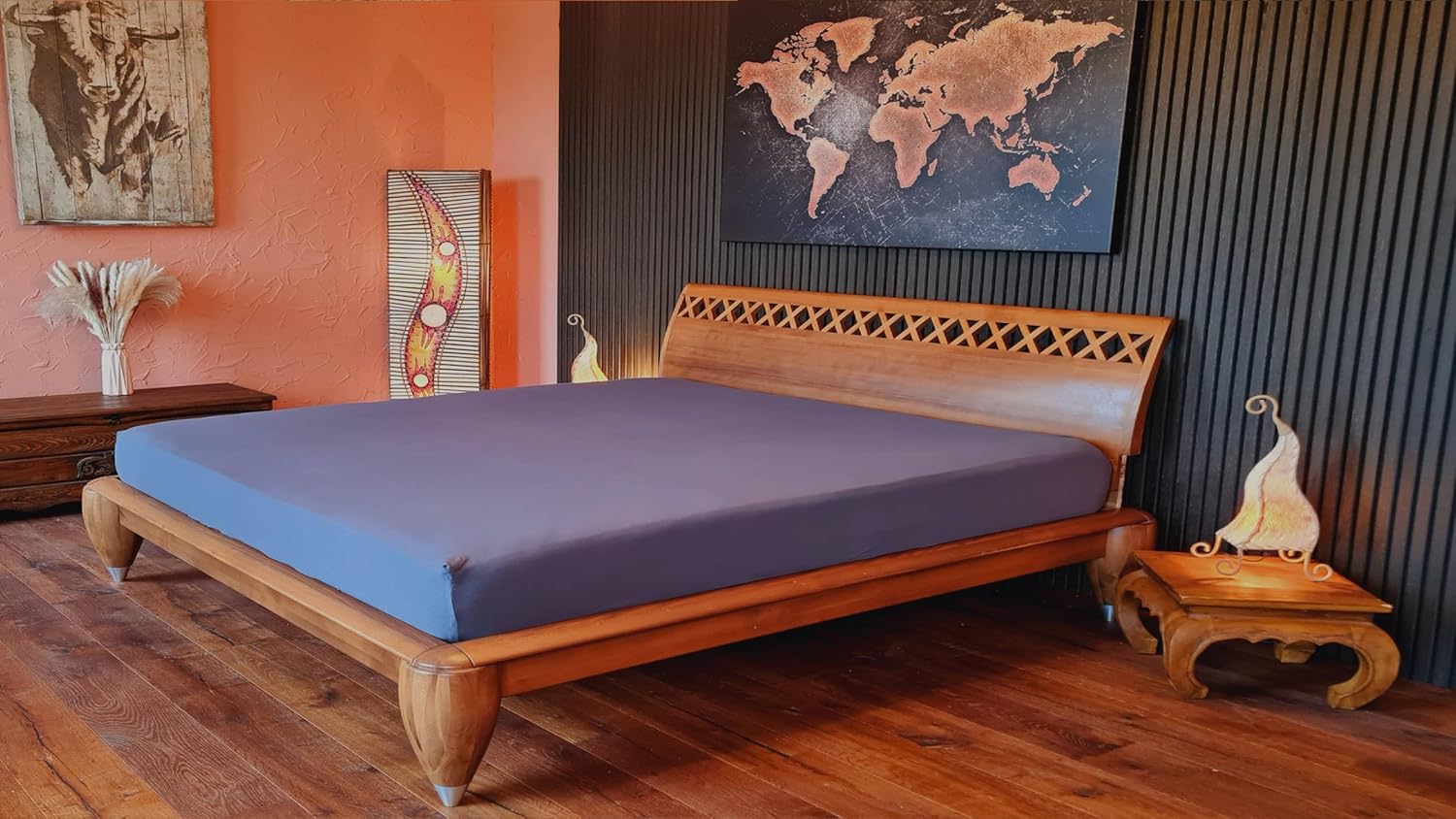 • Размер: памучен чаршаф с еластична материя с размери 180 x 200 до 200 x 220 см с екстра висок мост (40 см) - подходящ за водни легла, легла с пружинна основа и всички матраци с височина до 35 см с размери 180 x 200, 180 x 210, 180 x 220, 200 x 200 000, 200 x 210 и 200x220