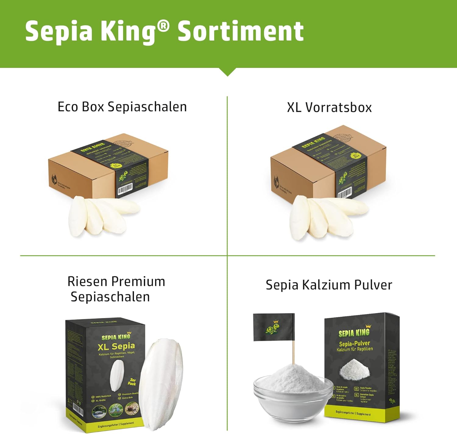 • НАТУРАЛЕН КАЛЦИЙ – Кост от сепия Кинг съдържа калций и минерали като йод, магнезий и цинк. Подходяща е като добавка към храната на костенурки, птици и безгръбначни.