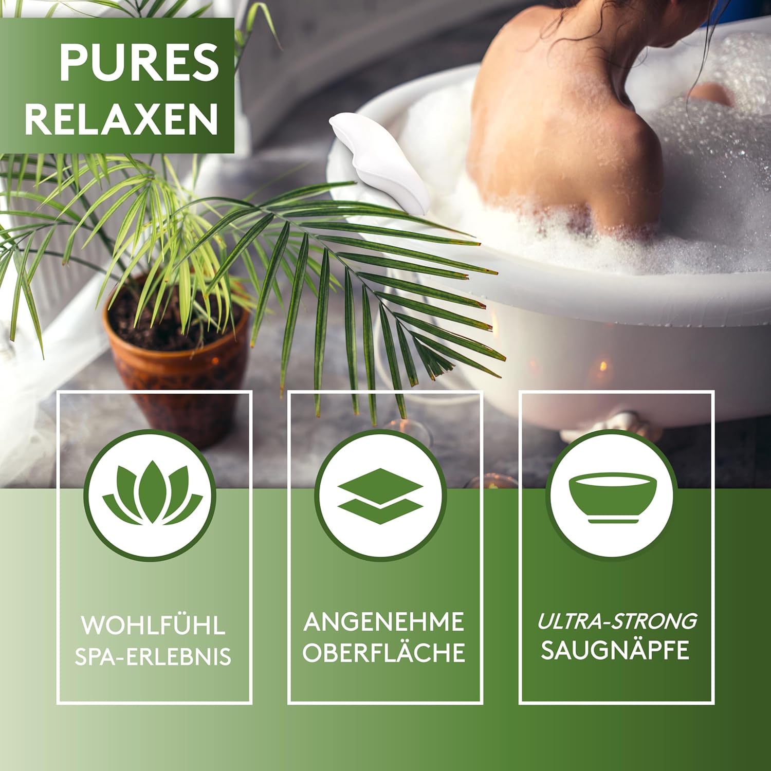 • Максимален комфорт – Нашата възглавница за вана осигурява ергономична опора за главата и врата, така че можете да се насладите на всяка вана като на релаксиращо спа преживяване. Идеална за дълги вечери във ваната.