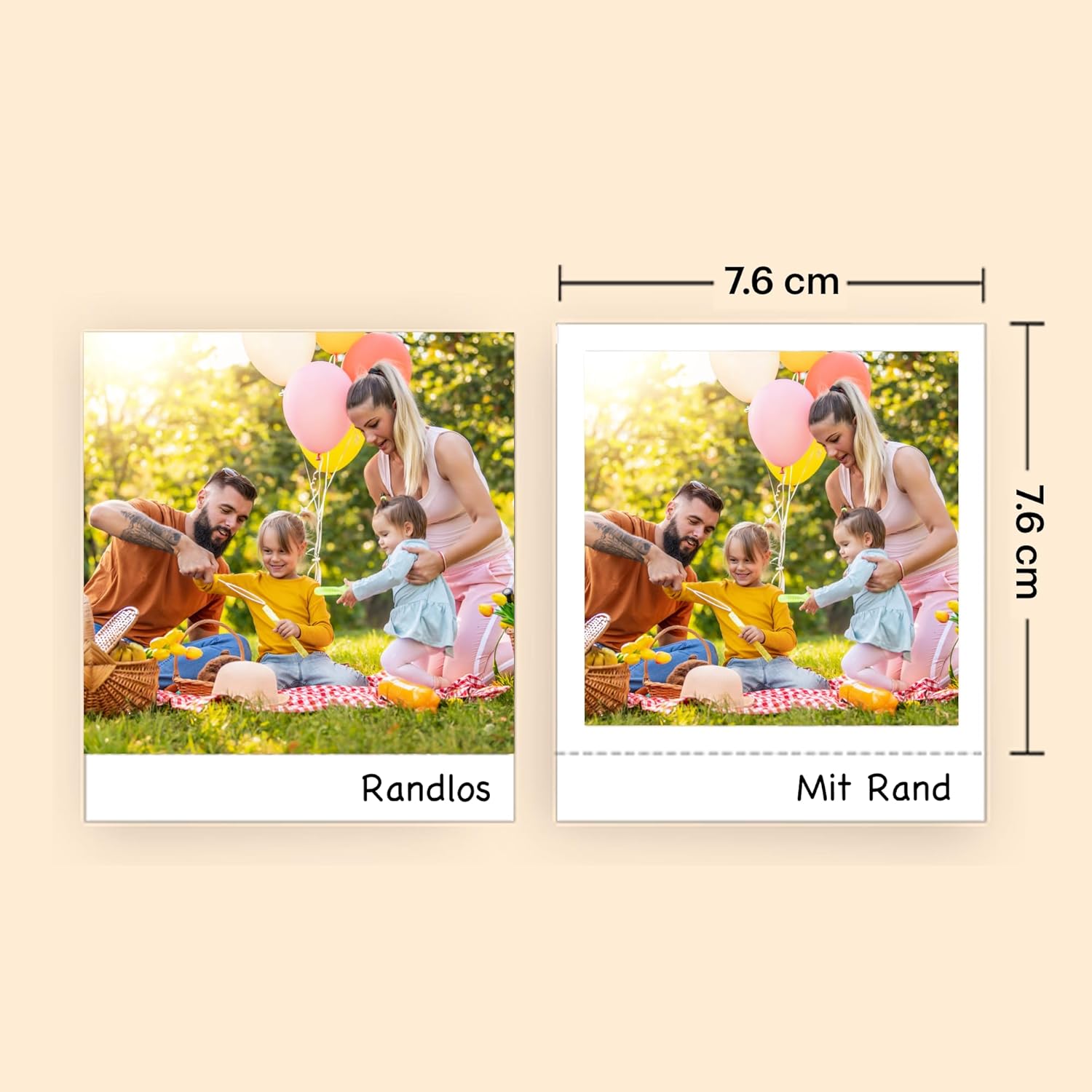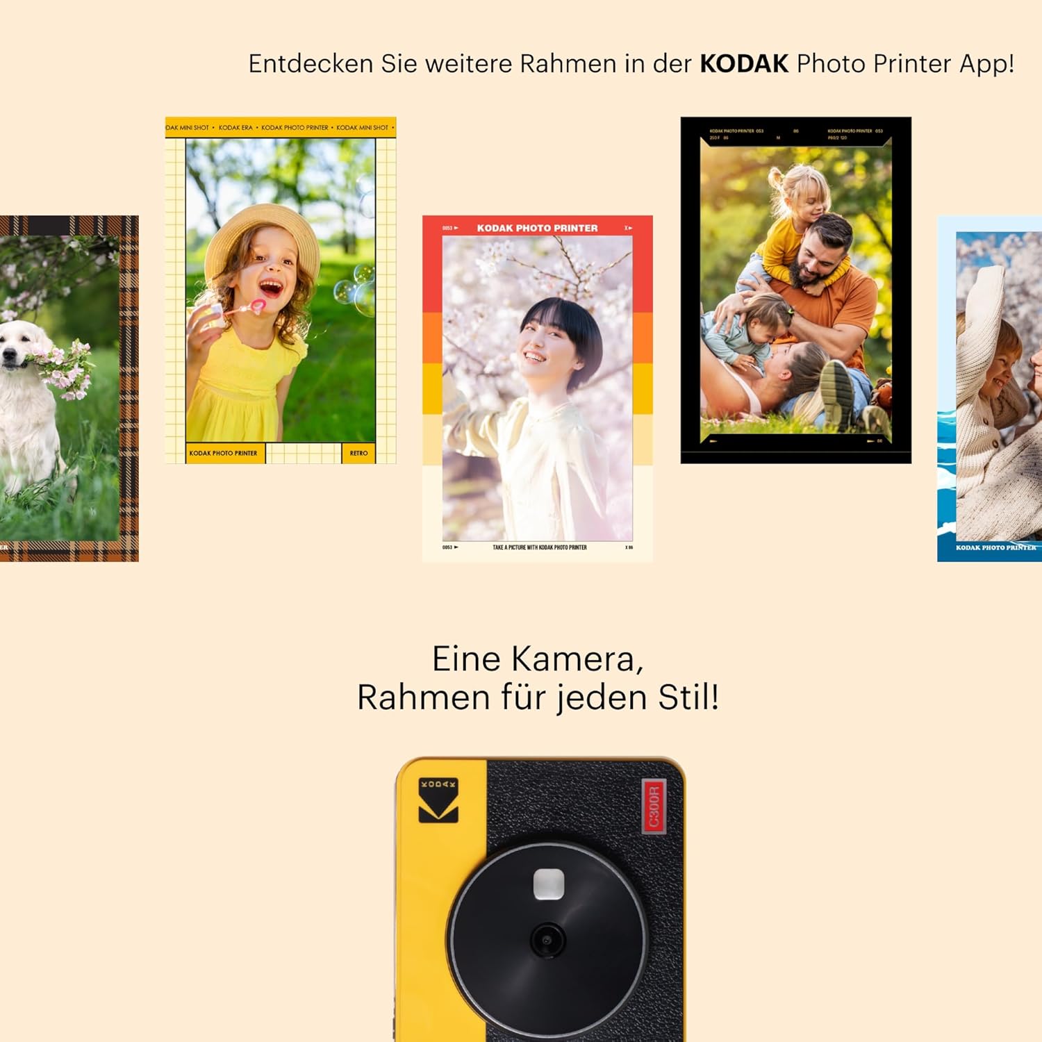 • ДВА ВИДА СНИМКИ - С фотопринтера Kodak Mini Shot 3 Retro е възможно да отпечатвате снимки със или без рамки. С този фотоапарат за моментални снимки можете да създадете трайни спомени, като ги запишете на ръба. Можете да отпечатате снимки без рамки, ако искате да ги отпечатате в по-голям формат.
