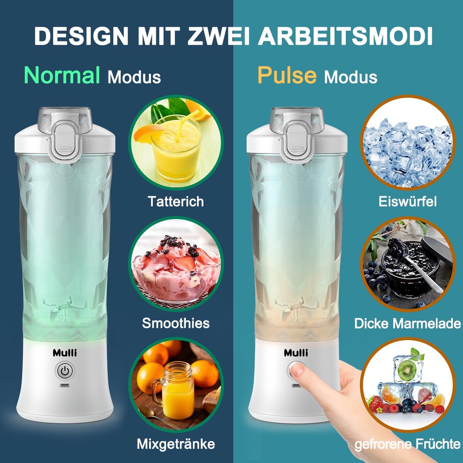 • Здраве и перфектен подарък: няма по-хубав подарък от това да донесете здраве на нашето семейство, приятели и любими. Преносимият блендер Mulli е професионален в приготвянето на плодови смутита, протеинови шейкове, бебешка храна и други допълнителни напитки. Може да се използва и като обикновена бутилка за вода, тъй като е лек и преносим. Mulli предлага 24-часово обслужване на клиенти.