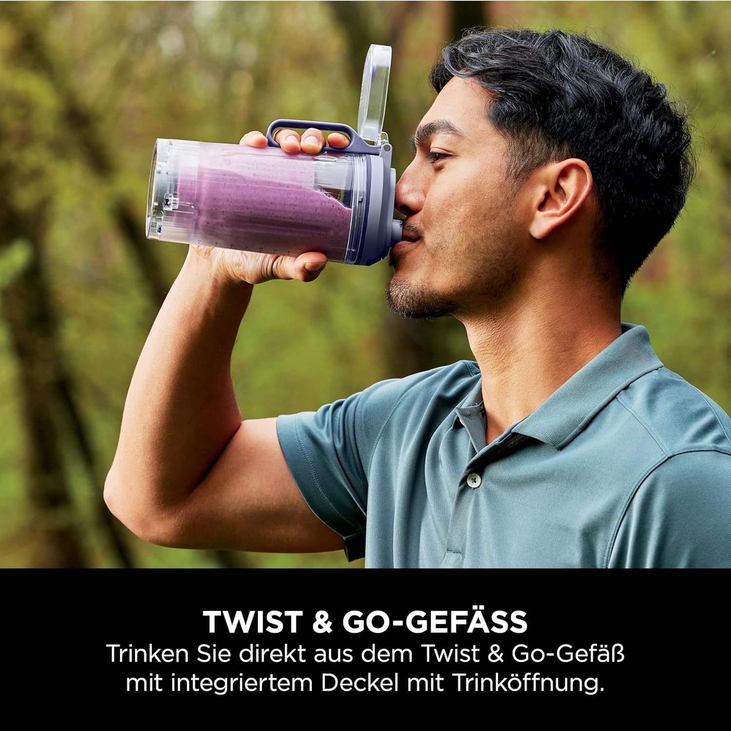 • Чаша за смесване 570 мл: с дизайна „twist-and-go“ можете да извадите чашата след смесване и да се насладите на смутита, шейкове и други, докато сте в движение. Включва капак против протичане, дръжка за носене и отвор за пиене (*490 мл максимален капацитет)