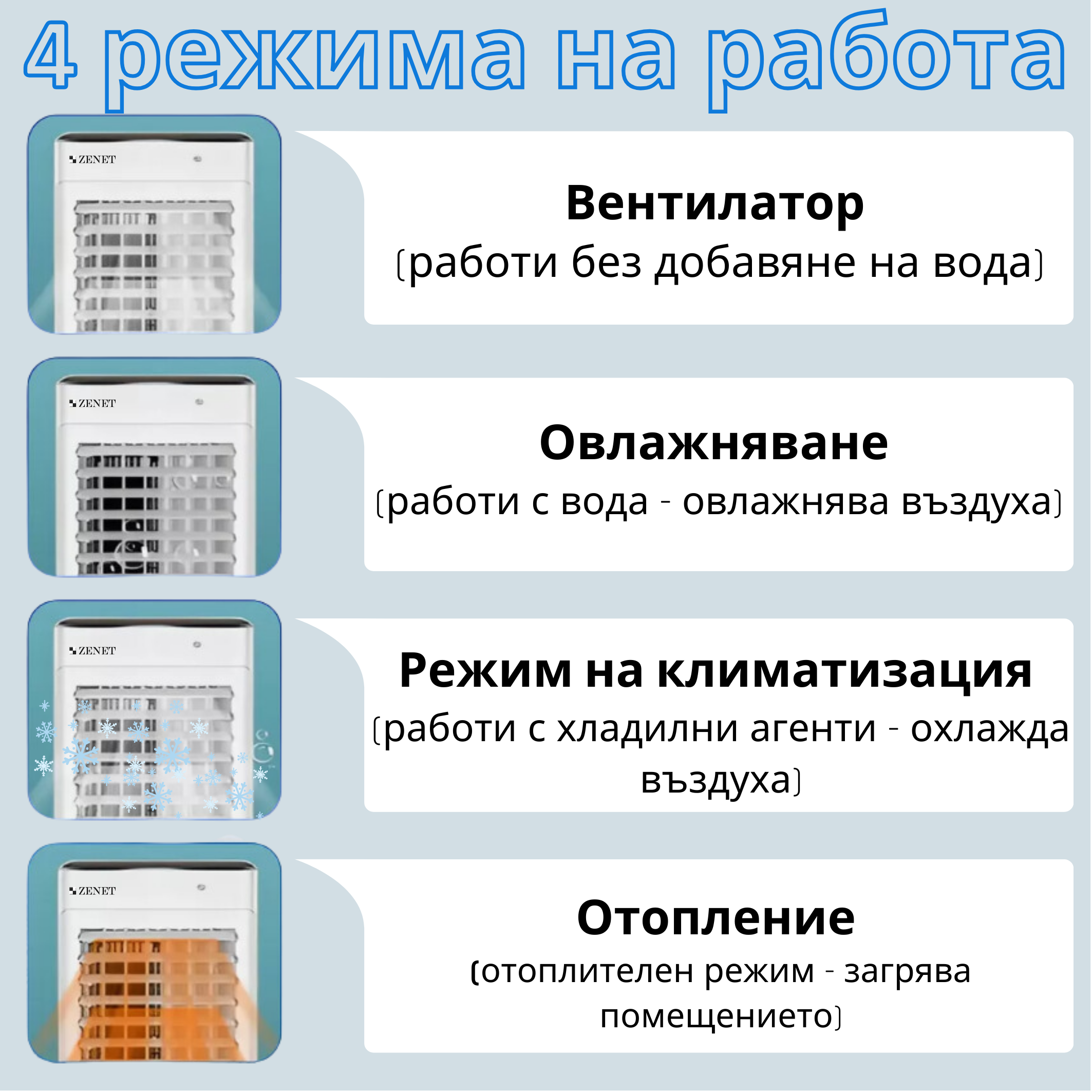 Комбинира функции за охлаждане, отопление, пречистване и овлажняване на въздуха, както и йонизация, осигурявайки не само приятна температура, но и чист въздух. Идеален за дома, офиса, магазина - без да дупчите стени, не изисква професионален монтаж и почти никаква поддръжа!