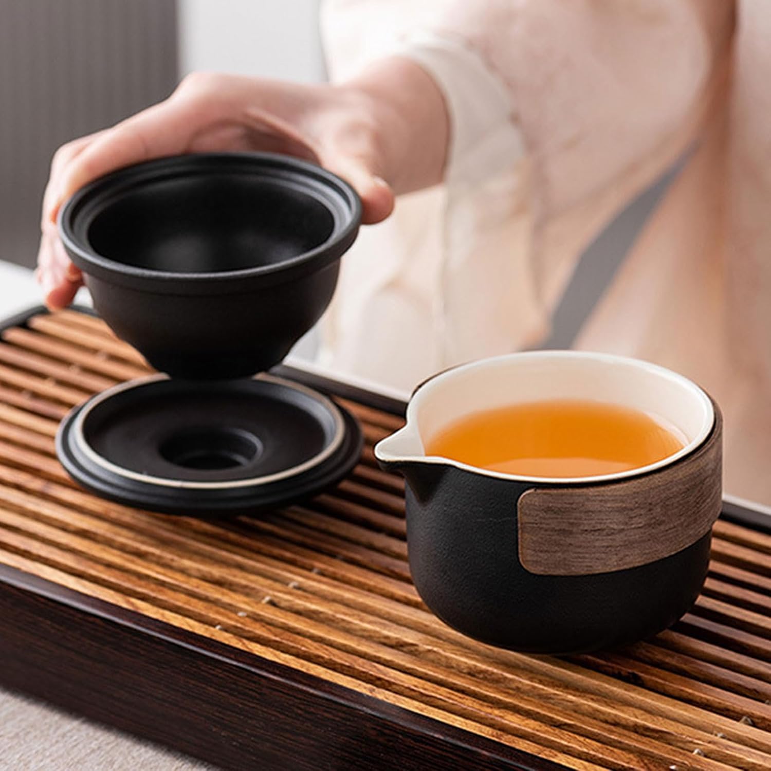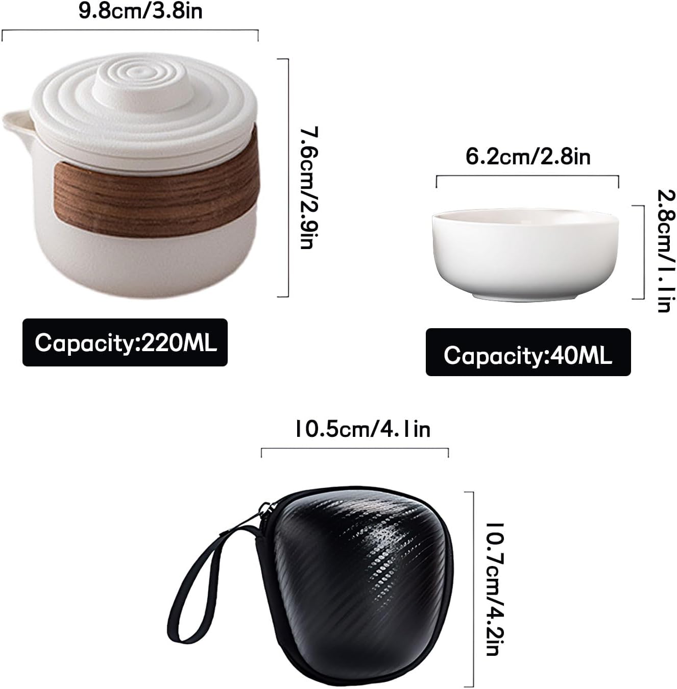 Вместимост: Керамичен комплект за чай приблизително 220 мл, чаени чаши приблизително 40 мл