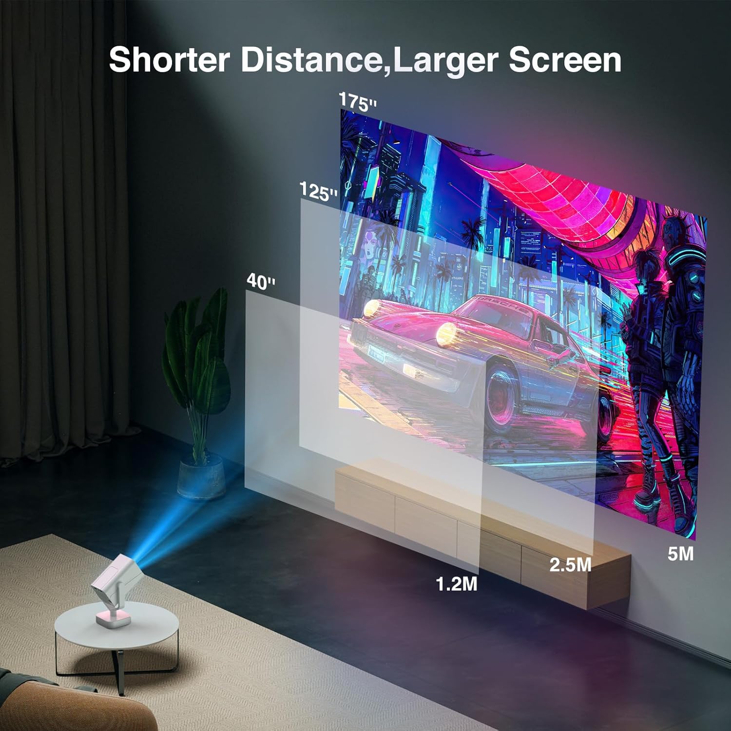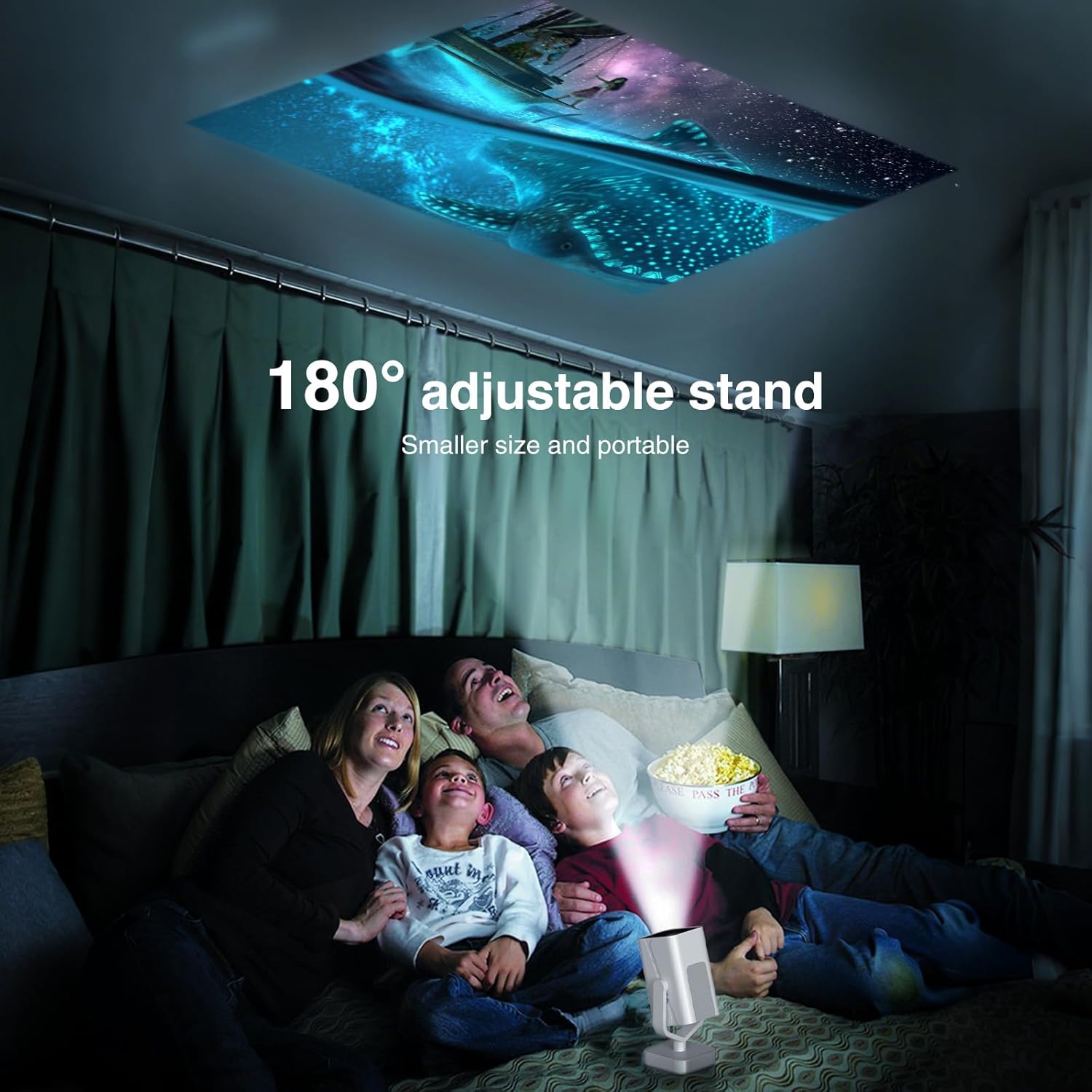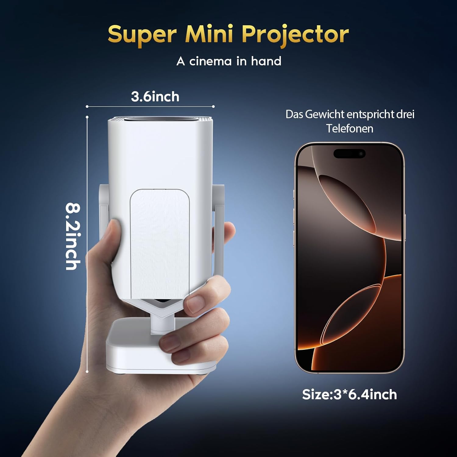 • Лек и преносим - Винаги с вас. Благодарение на компактния дизайн и ниското тегло, проекторът може да се използва навсякъде. Независимо дали е хол, спалня, офис или къмпинг - просто го вземете със себе си, настройте го и се насладете на кино изживяване за секунди. Без обемисти устройства, без затруднения - вашето забавление вече се побира във всеки джоб.