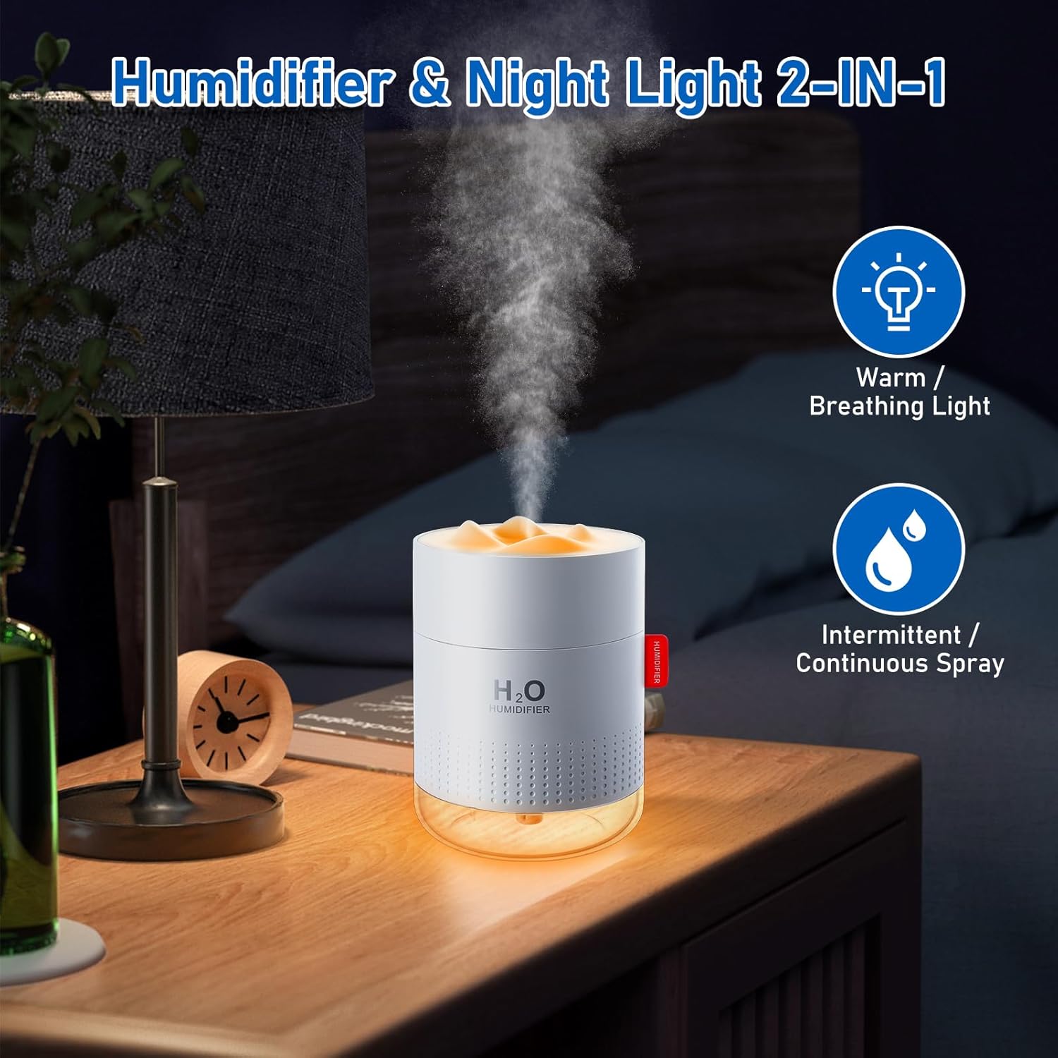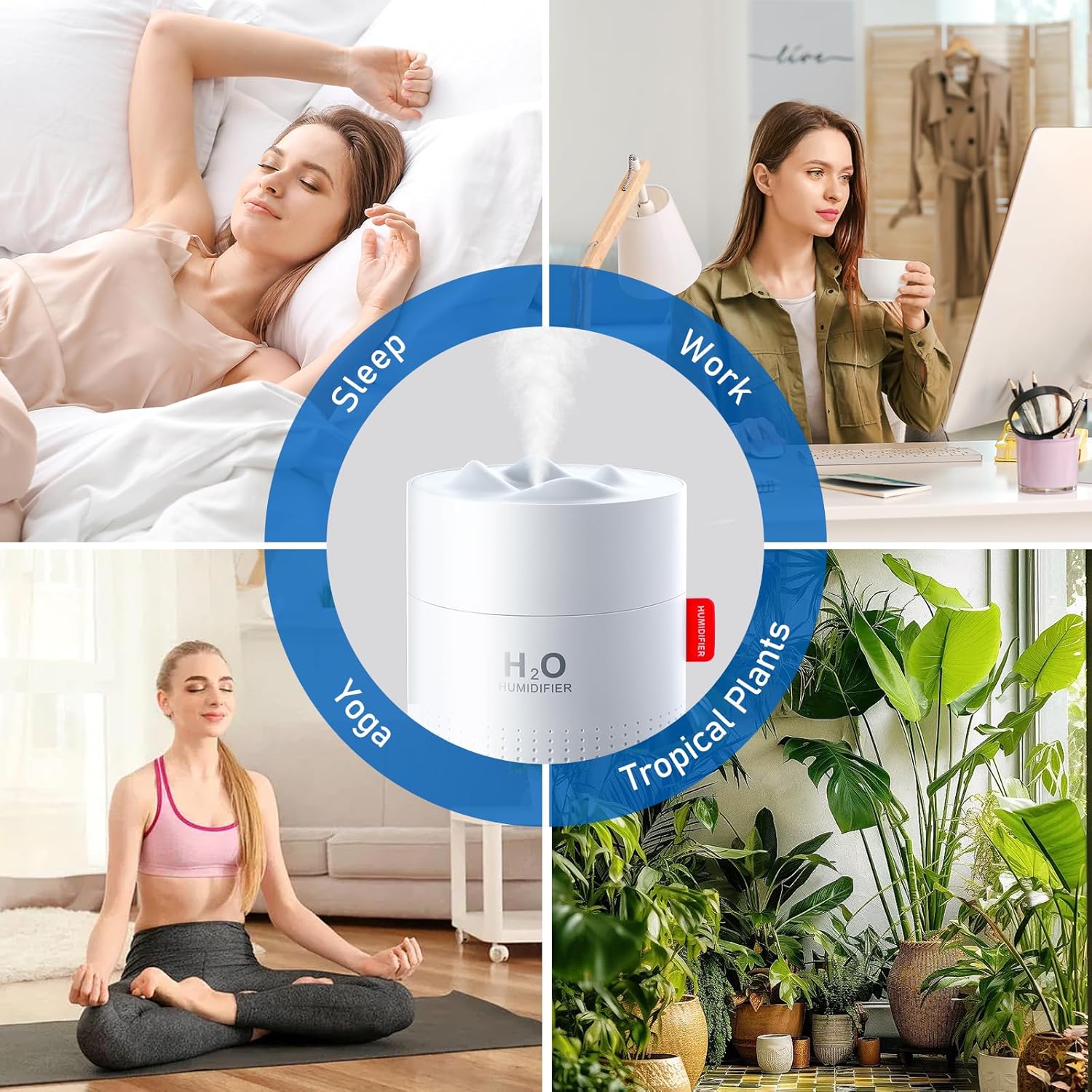 • 【Тиха ултразвукова работа】: По-малко от 30 dB тиха атмосфера може да създаде по-тиха среда за сън. Овлажнявайте жилищното си пространство, за да предотвратите сух, задушен въздух и заразяване на вашите близки с грипни/настинкови микроби. Избягвайте суха и напукана кожа през сухите зимни месеци.