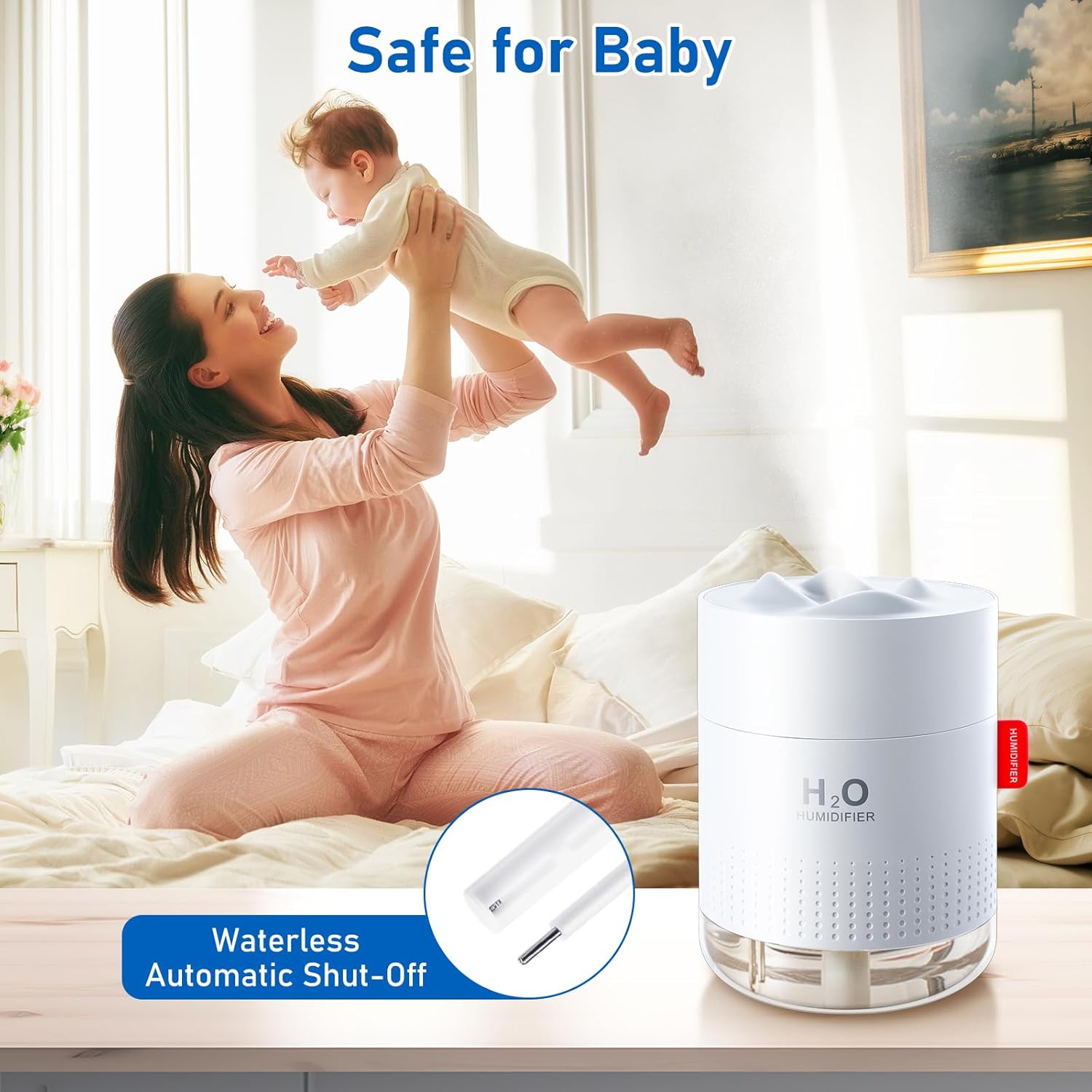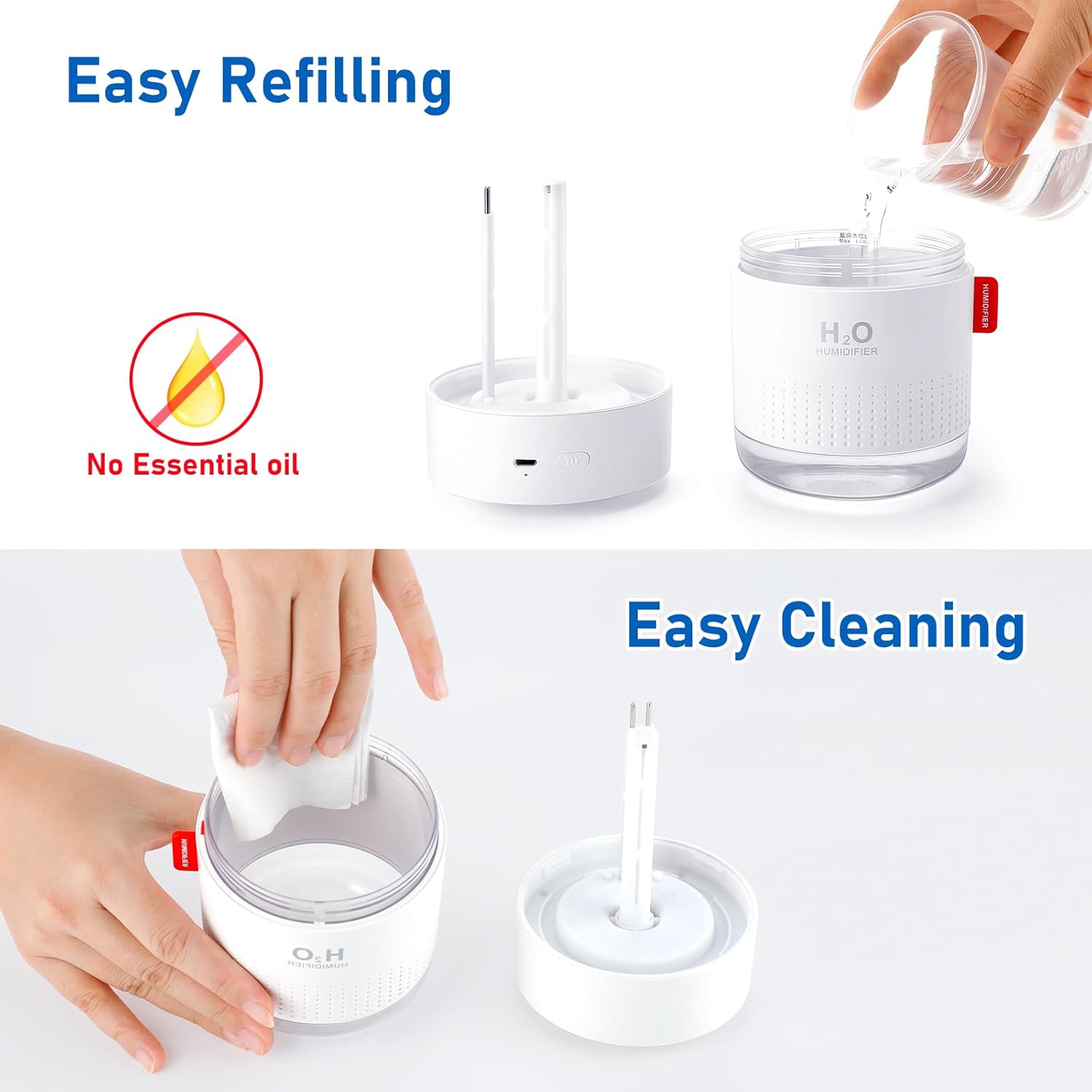 Преносим мини ултразвуков овлажнител за въздух 500 мл + 2 филтъра за спалня, тиха стая, дом, йога, офис, до 10-16 часа непрекъсната употреба, автоматично изключване