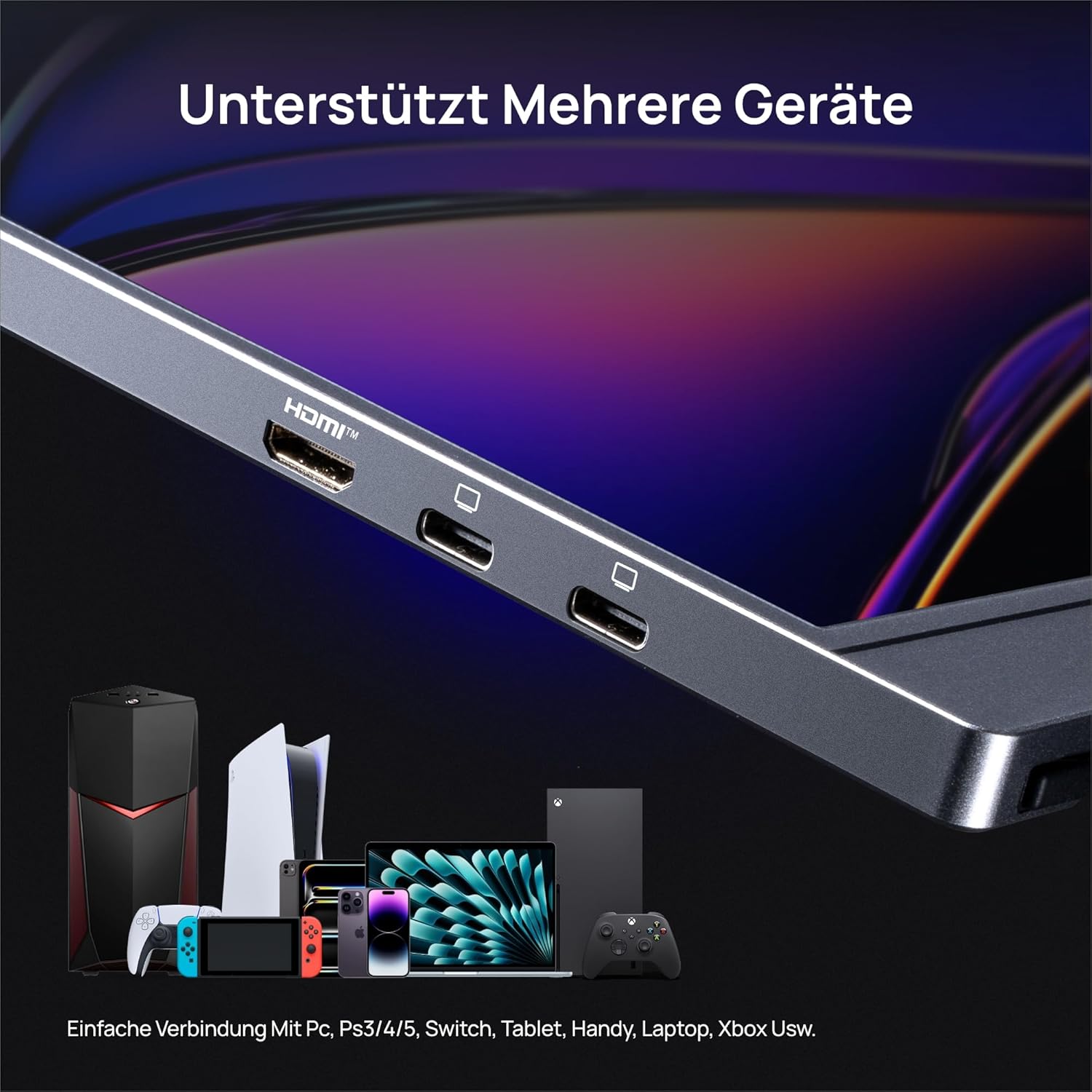 • [Широка съвместимост за работа/игра] Преносимият монитор за лаптоп може лесно да се свърже с лаптоп, PC, Mac, XBOX, PS3/PS4/PS5, комутатори и др. чрез Type-C или mini HDM порт, което осигурява стабилна връзка и равномерен трансфер на данни.