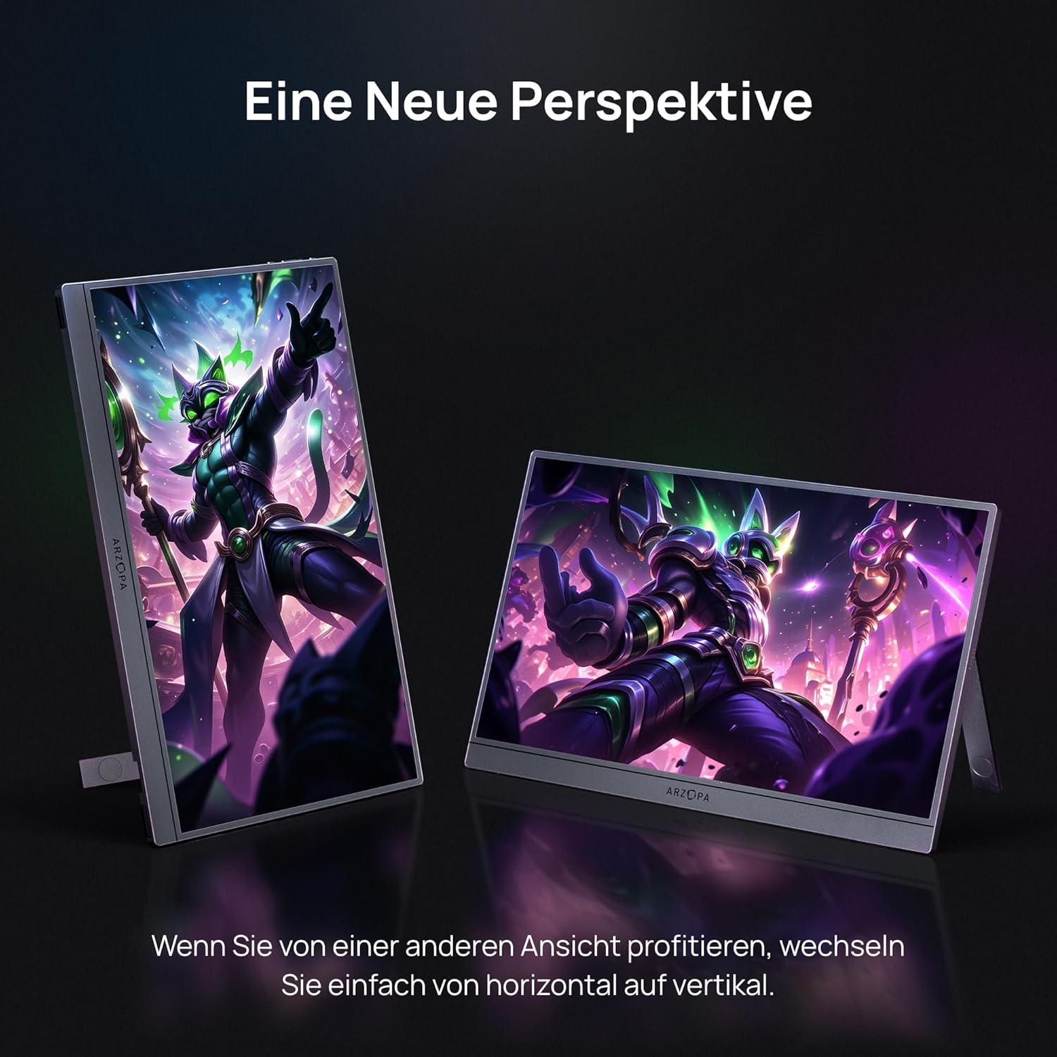 • [Преносим монитор със стойка] Преносимият монитор ARZOPA с вградена стойка може лесно да се регулира според предпочитания от вас ъгъл на гледане. Няма значение къде се намирате, не се нуждаете от допълнителна опора.