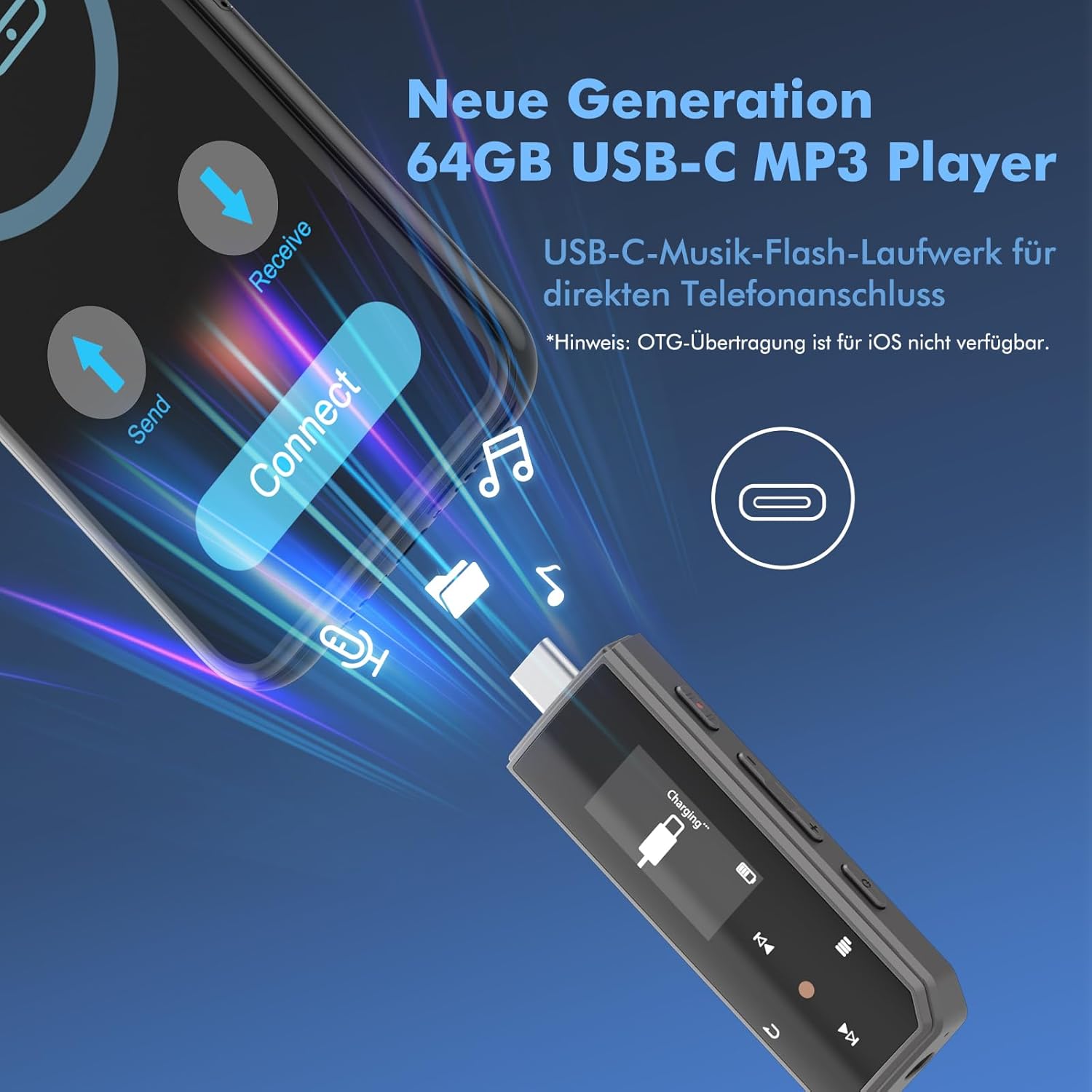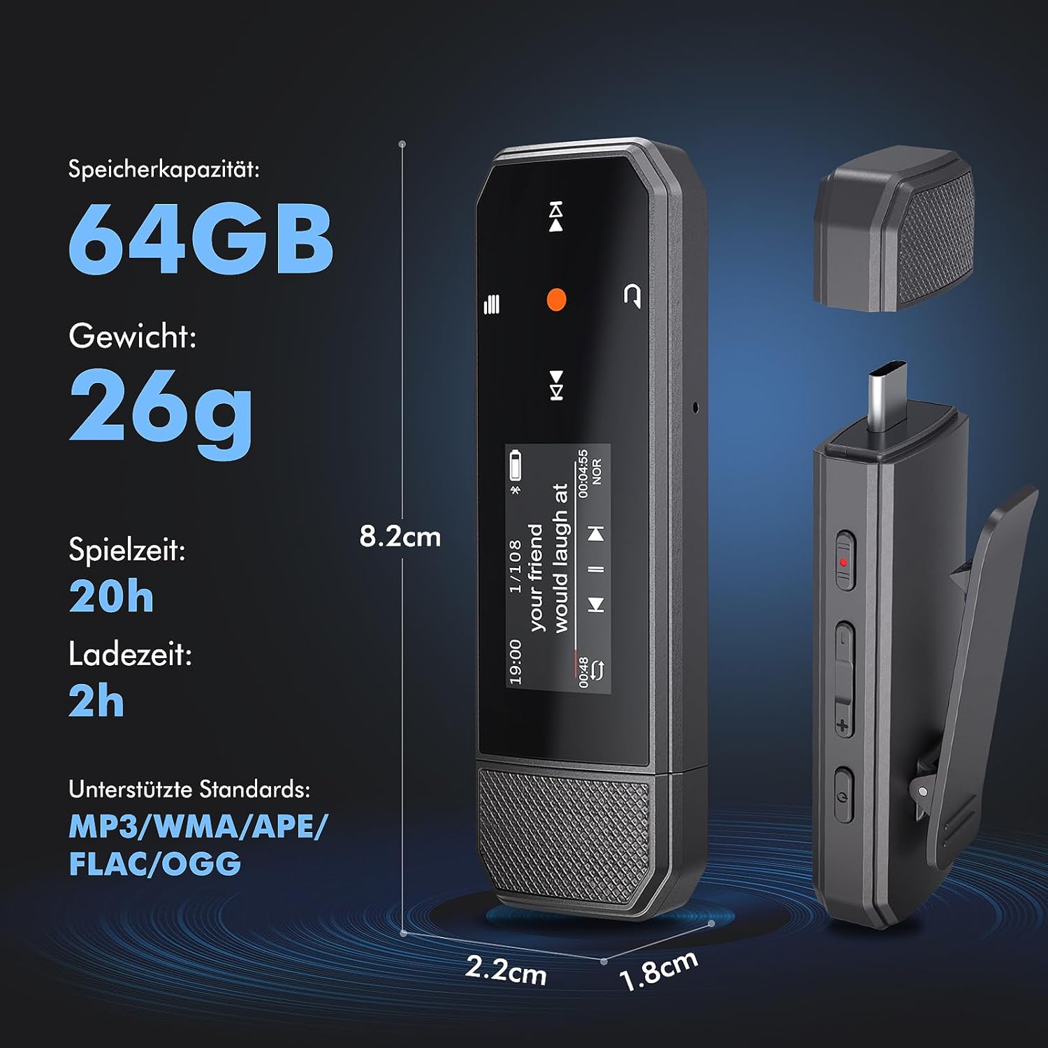 Кажете сбогом на досадните кабели за данни, този мини MP3 плейър има Type-C конектор със защитен калъф и може да бъде свързан към вашия телефон или компютър по всяко време, така че да можете да прехвърляте любимата си музика по всяко време.
