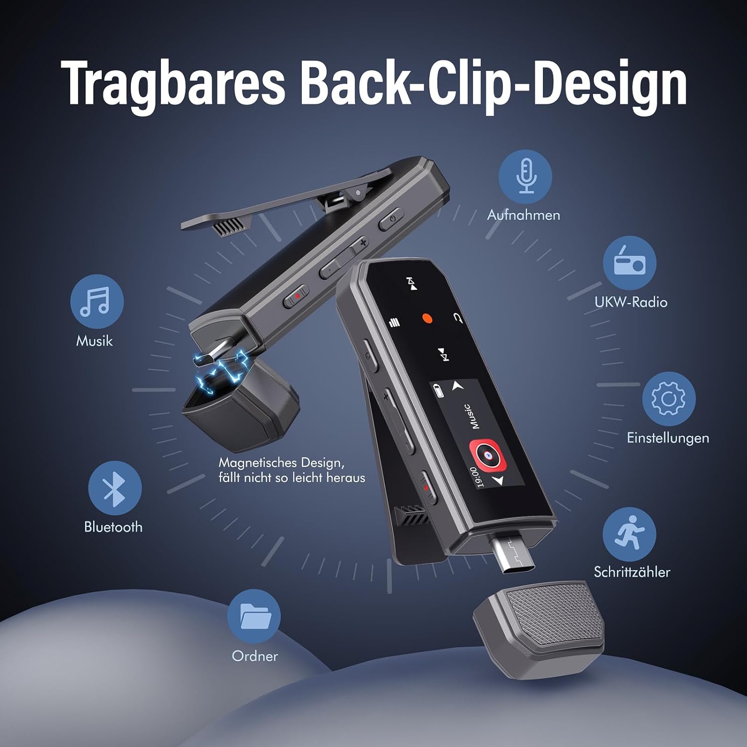 Whether outdoor hiking or indoor fitness, the MP3 attaches well to your clothes with the clip on the back and weighs only 26 grams, which does not strain your workout. Let music accompany you during training.