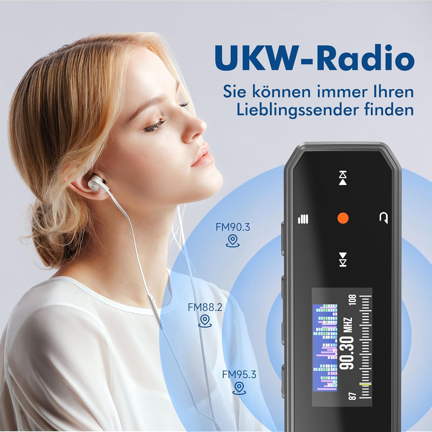 This portable MP3 player has an FM radio function and supports the FM frequency range: 87.5MHz-108MHz You can listen to the radio by setting the appropriate channel.