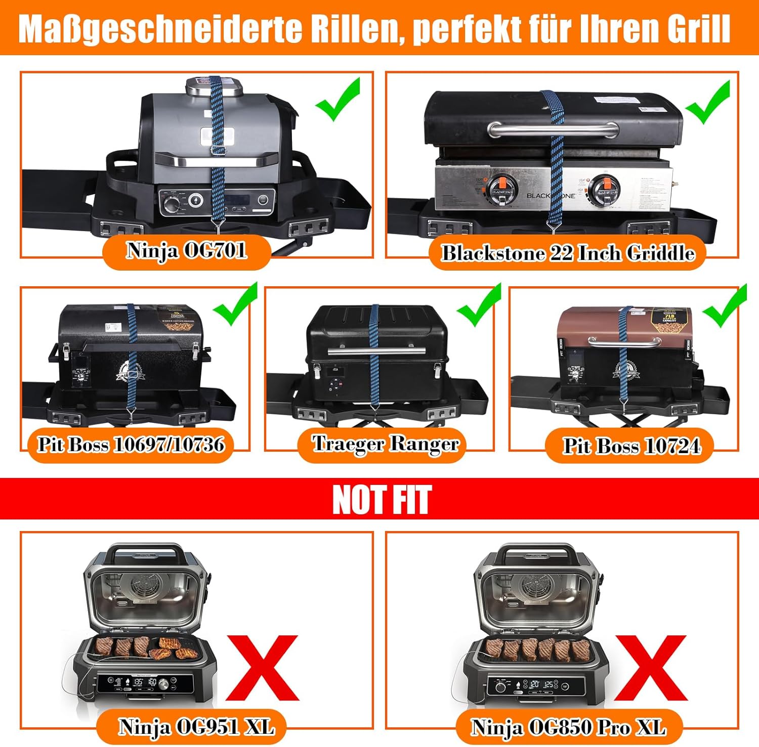 Dieser Wagen wurde sorgfältig auf die spezifischen Bedürfnisse Ihres Grills zugeschnitten und ist auf die Modelle Ninja OG701, Traeger Ranger, Pit Boss 10697/10736, Pit Boss 10724 und Blackstone 22-Zoll-Grillplatte zugeschnitten. Verabschieden Sie sich von generischen Ständern und begrüßen Sie ein neues Niveau der Grillexzellenz.