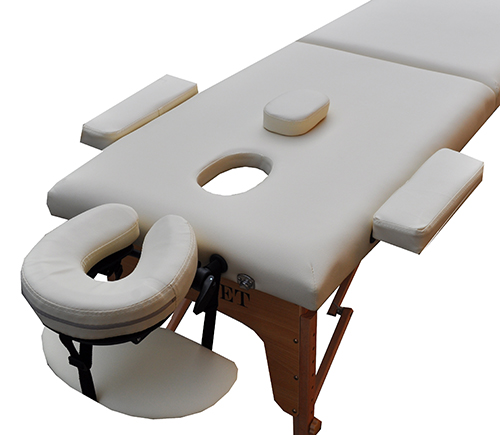 Това уникално СПА оборудване позволява на масажния терапевт да избере желаната работна височина и позиция на възглавницата при извършването на рехабилитационните процедури. Като допълнително удобство масажното легло е снабдено с регулируеми облегалки за ръцете. При сгъване придобива формата на куфар с крачета и дръжка за пренасяне.