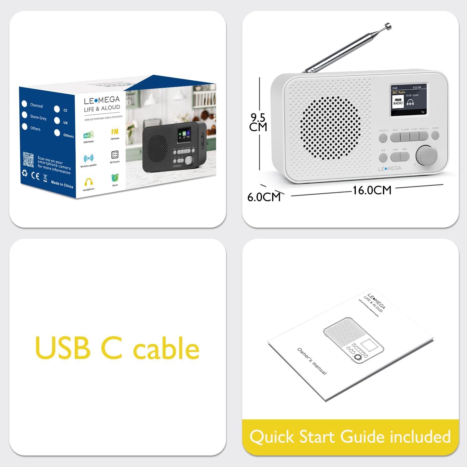 • Първият в света, произведен някога: Lemega произвежда брилянтни DAB радиостанции от 2009 г. и е продала милиони устройства във Великобритания и Европа. Лесни за употреба: Този пакет съдържа 1 x DAB GO радио, 1 x USB-C захранващ кабел, 1 x ръководство за потребителя (английският език не е гарантиран). Прецизност: 16 см Ш x 9,5 см В x 6 см Д, 375 г.