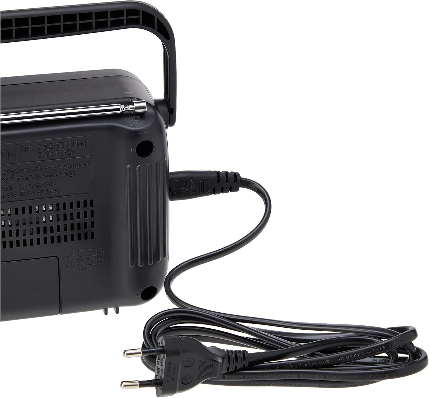 Компактното и лесно за употреба радио RF-2400D впечатлява с изключително големия си честотен дисплей с червено LED осветление за много добра четливост. Устройството ви предлага и лесно и стабилно търсене на станции с автоматично регулиране на честотата (AFC). В допълнение към захранването от мрежата, устройството има функция за батерии и може да се носи навсякъде благодарение на практичната дръжка за носене.