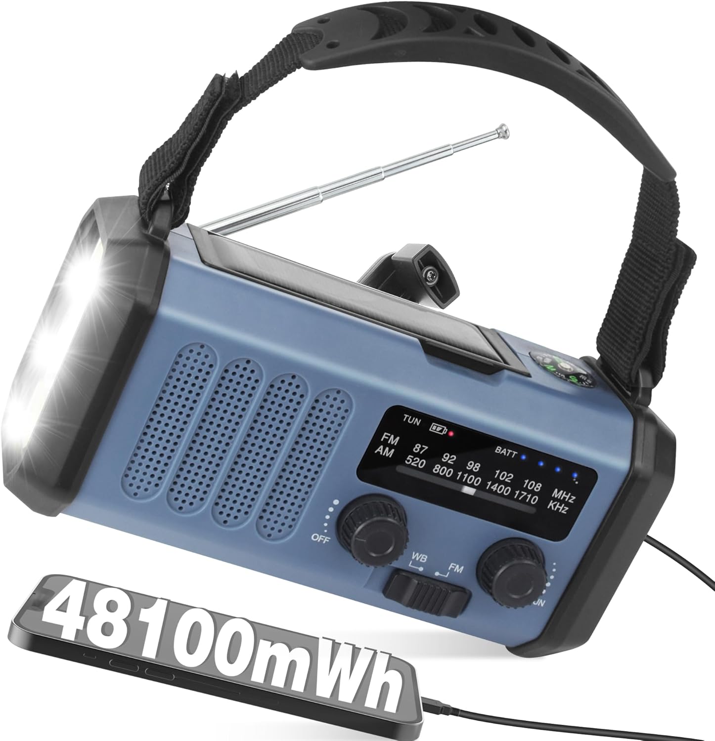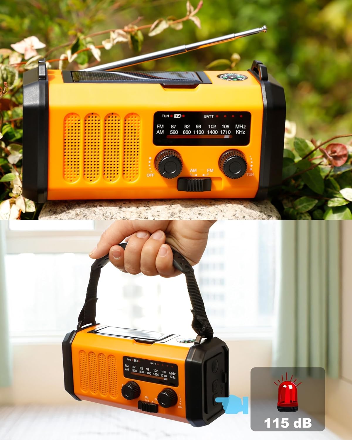 Dieses tragbare Funkgerät integriert alle Funktionen in einem, erfüllt alle Ihre Anforderungen für die Notfallvorsorge! Ein interner Akku mit 13000 mAh großer Kapazität, doppelt oder mehr als die durchschnittlichen Notfallfunkgeräte, lädt zwei Mobiltelefone Ihrer Familie voll auf, nicht nur eine Notstromversorgung von 1,4 Die Quelle lässt immer Strom, auch wenn die interne Batterie leer ist, einfach per Handkurbel oder Solarenergie, um ein totes Telefon zu laden oder Ihren dunklen Raum zu beleuchten.