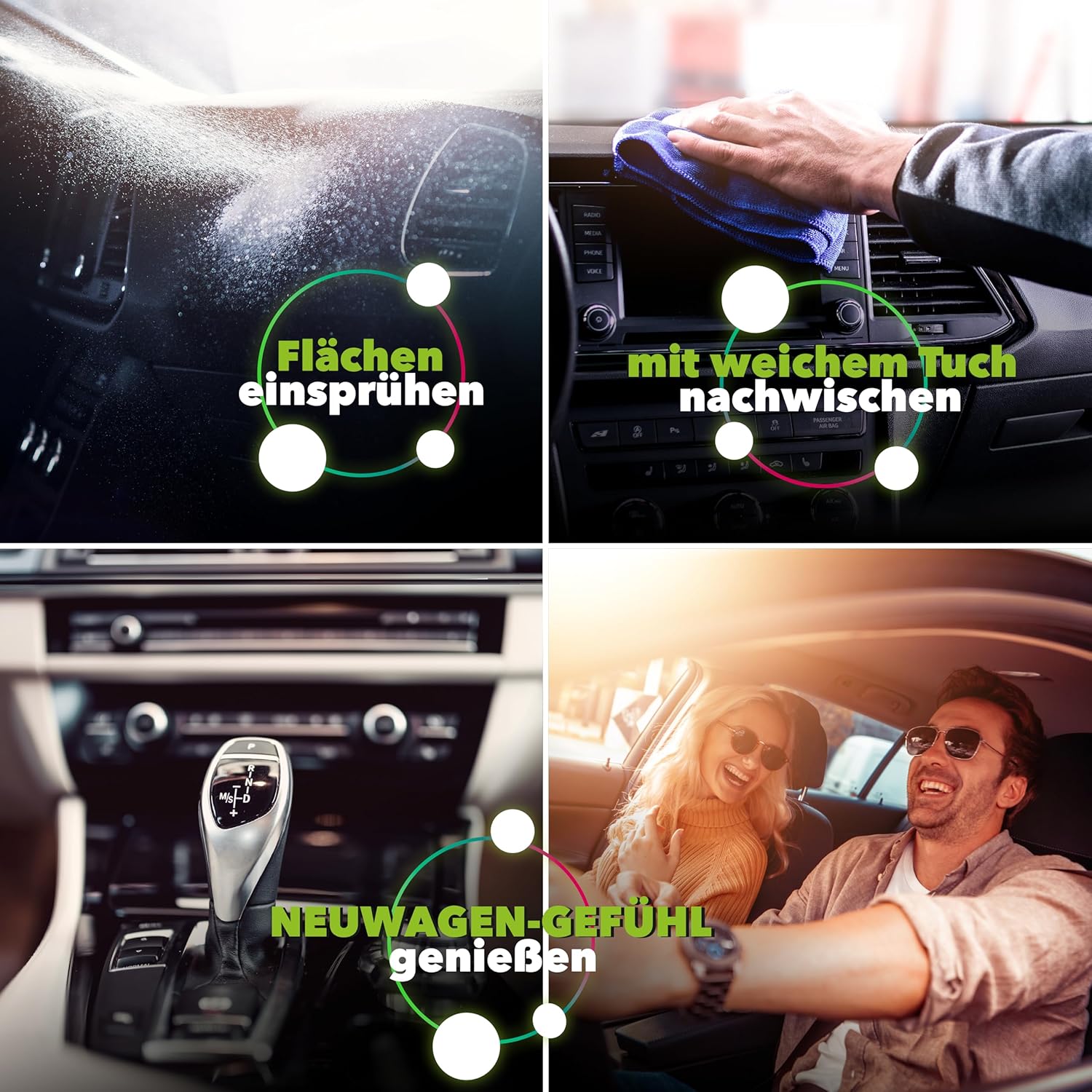 • Антистатичен и без мирис - За свежо шофиране. Оставя антистатична, матова повърхност без изкуствен блясък. Неутрализира неприятните миризми и оставя свежо и чисто впечатление.