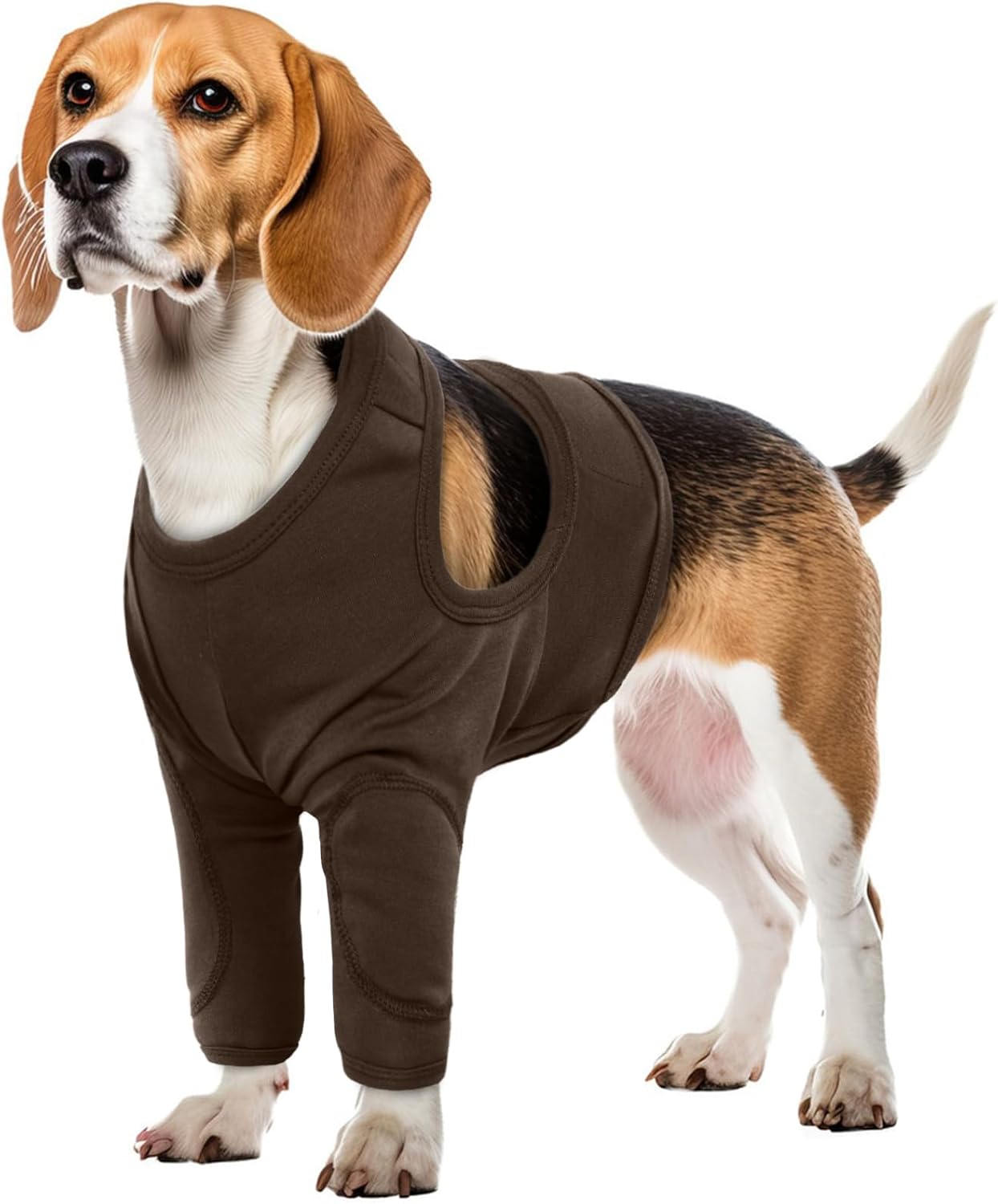 • 【Защита за предните крака】Нашият костюм за възстановяване на кучета е изработен от мек, еластичен памук, който се приспособява към тялото на вашето куче, осигурявайки оптимален комфорт и защита. Протекторите за крака могат да предотвратят облизването на кучетата и да предпазят ставите, раните, огнищата, инфекциите и кожните проблеми.