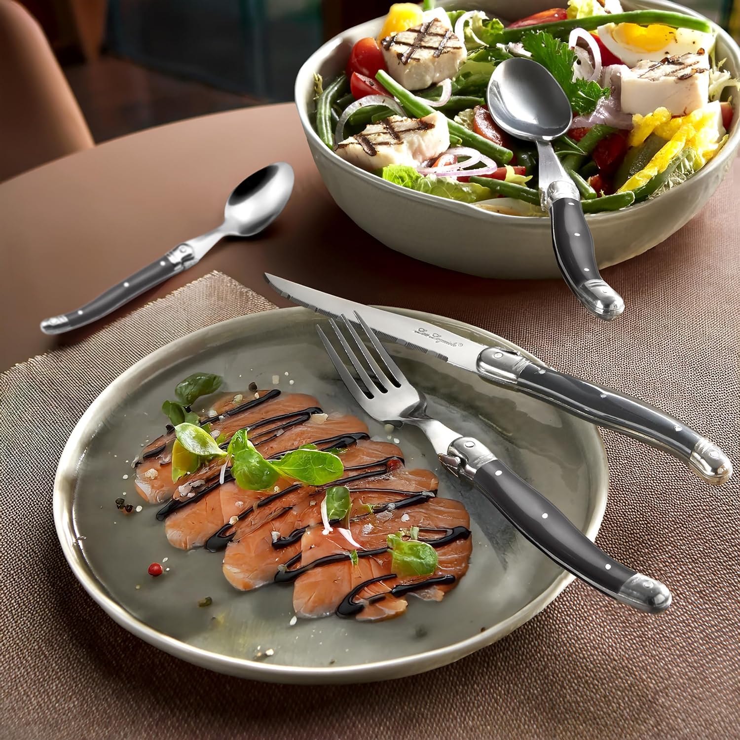 Прибори за хранене Lou Laguiole Steak TRADITION, прибори за хранене, неръждаема стомана с цветни пластмасови дръжки, антрацит, за 12 души, 48 броя