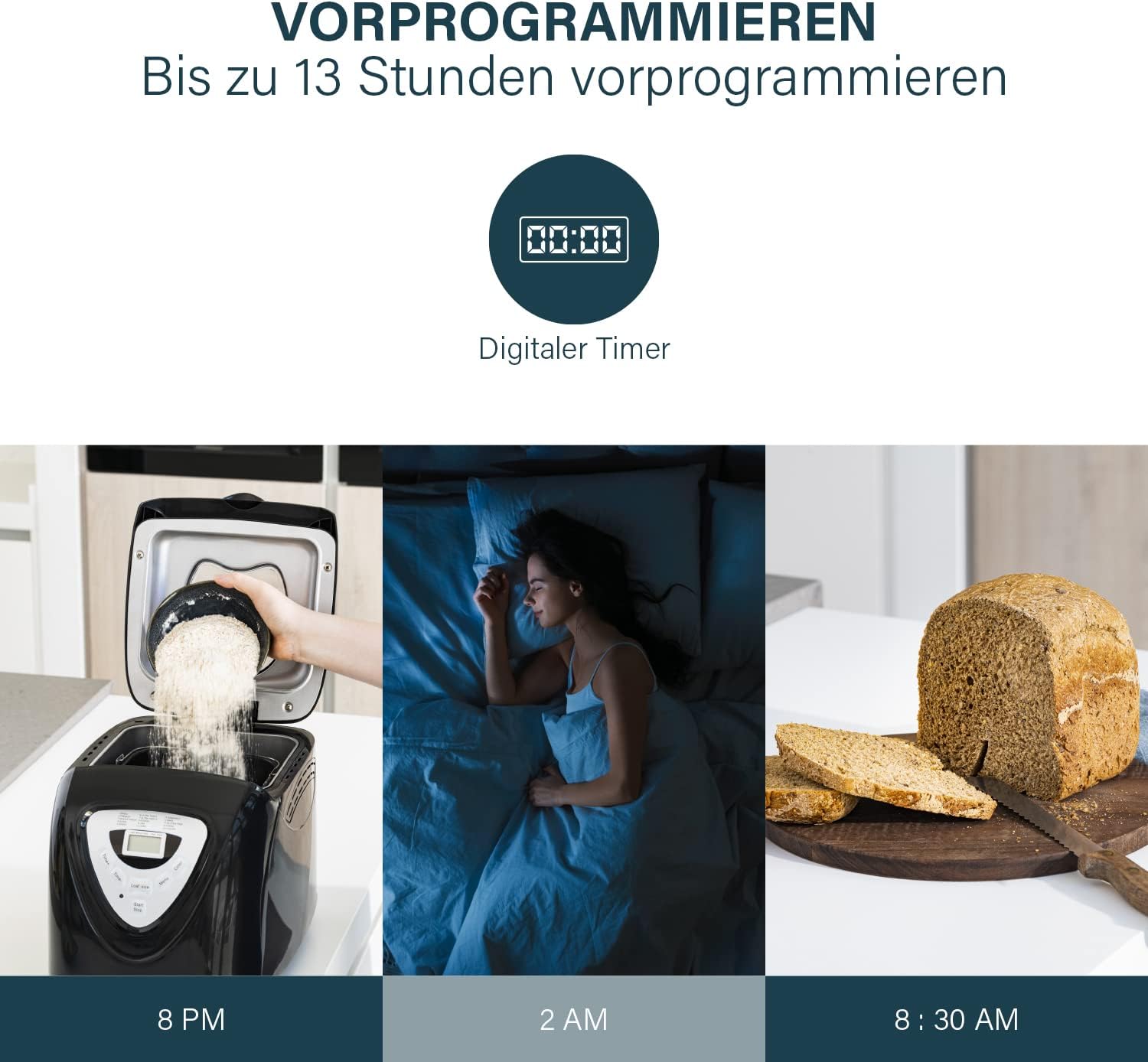 • Пресен хляб всеки ден благодарение на цифровия таймер и функцията за затопляне